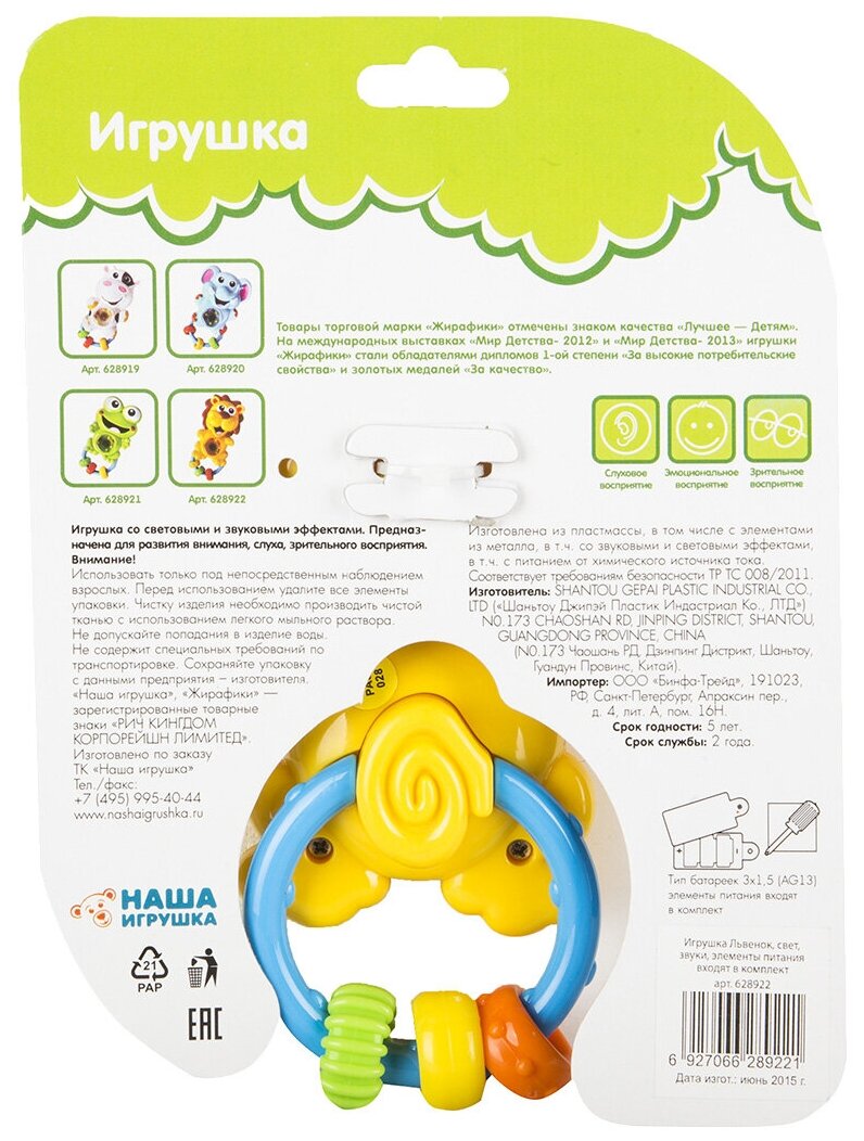 Ниже Вы можете прочитать отзывы на Погремушка для новорожденных со светом, звуком и музыкой Лев Жирафики, ознакомится с подробными характеристиками, посмотреть интересные обзоры и фотографии на Погремушка для новорожденных со светом, звуком и музыкой Лев Жирафики.