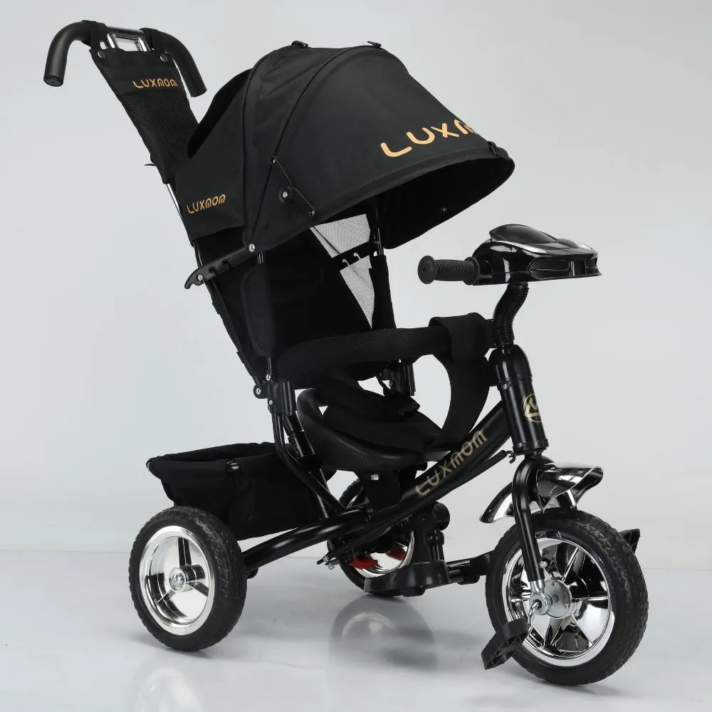 Велосипед детский трехколесный Luxmom 5588 с родительской ручкой, цвет Черный