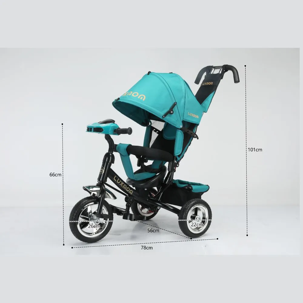 Детский трехколесный велосипед, Luxmom, с музыкальной панелью ,поворот сиденья 360,цвет синий