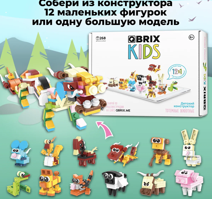 Конструктор QBRIX KIDS Тотемные животные (совместим с лего/lego, пластиковый, развивающий, для мальчиков, для девочек, животные)
