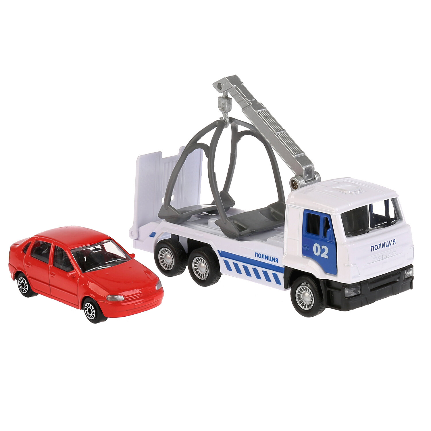 Купить Машина Kamaz Эвакуатор Полиция 12 см + машинка 7,5 см металл инерция Технопарк SB-16-27-A1-WB (48)
