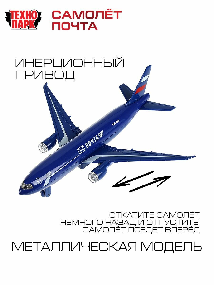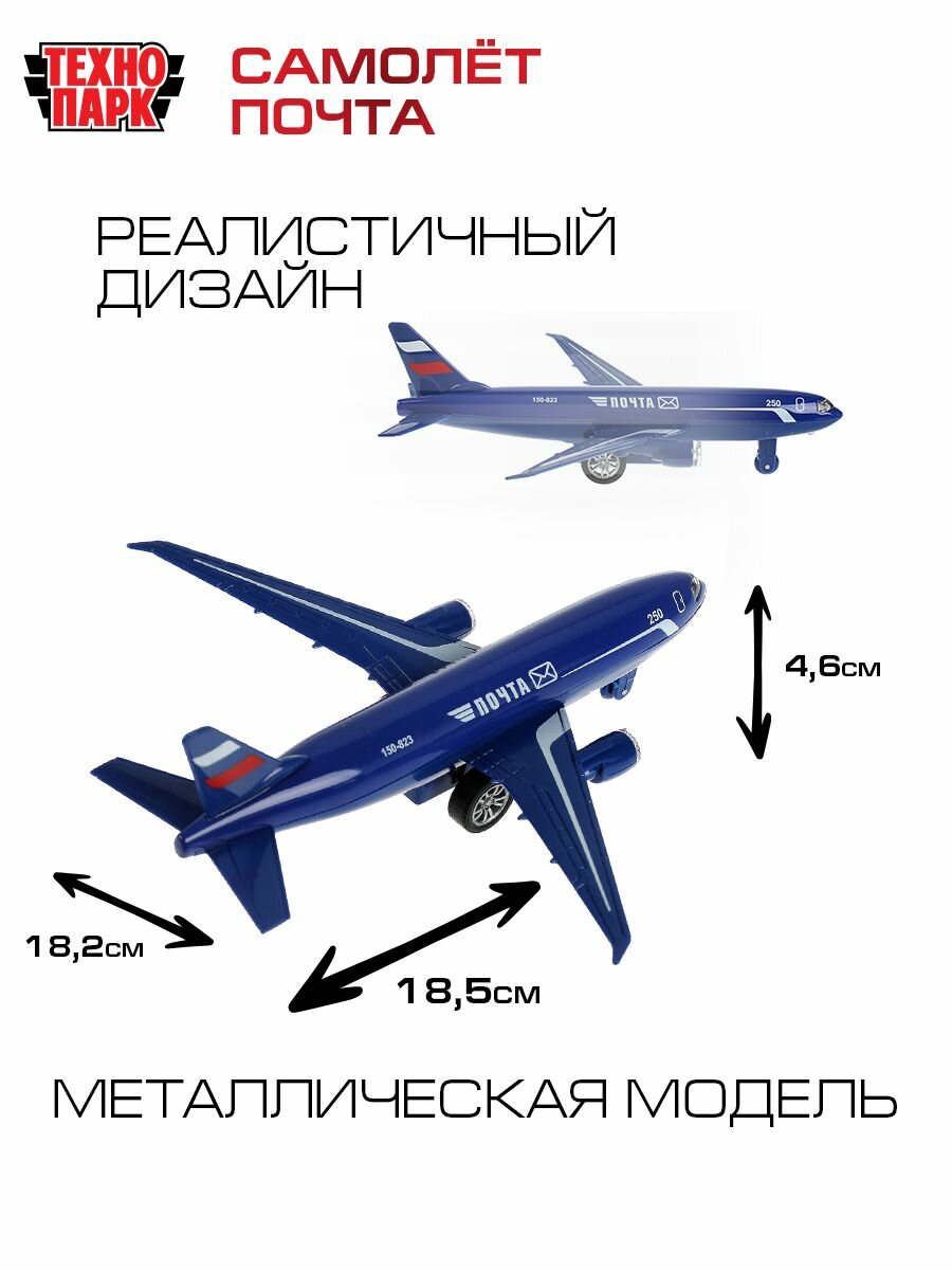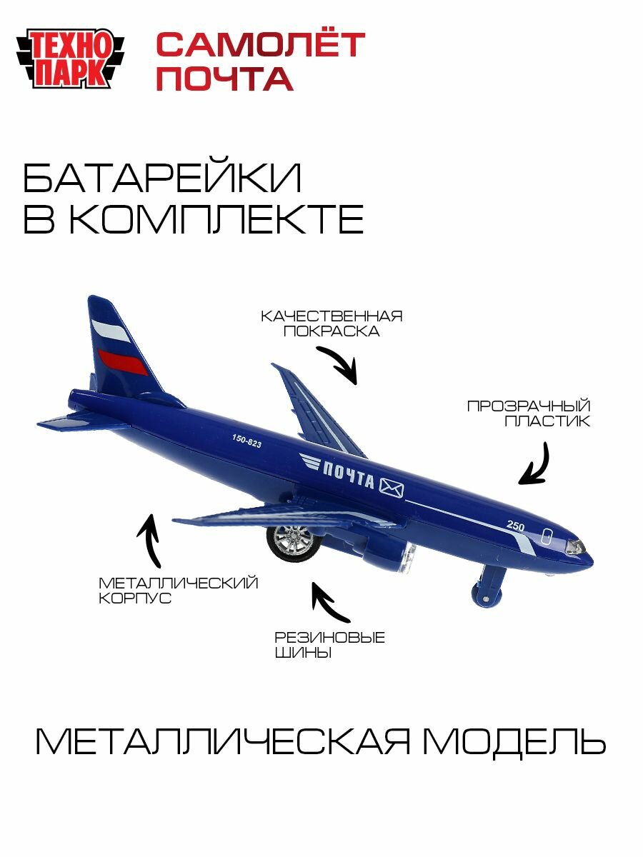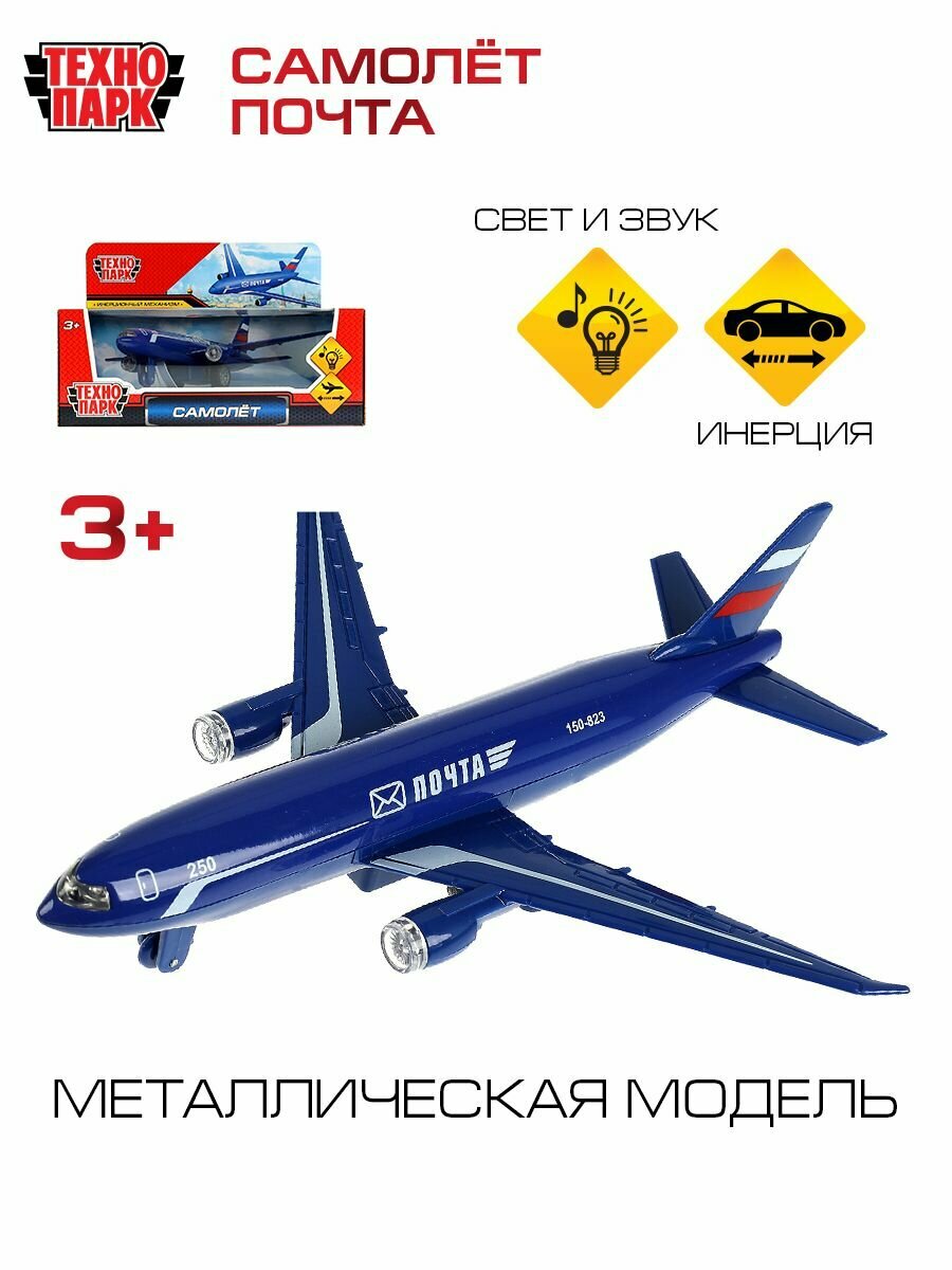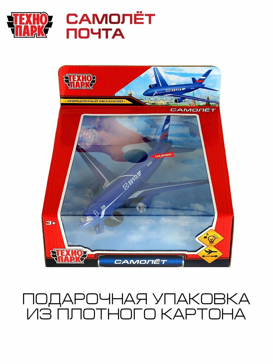 Игрушка для мальчика металлическая Технопарк Самолет Почта инерционная со светом и звуком 18,5 см