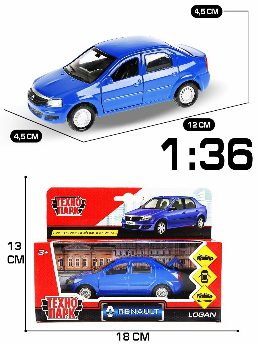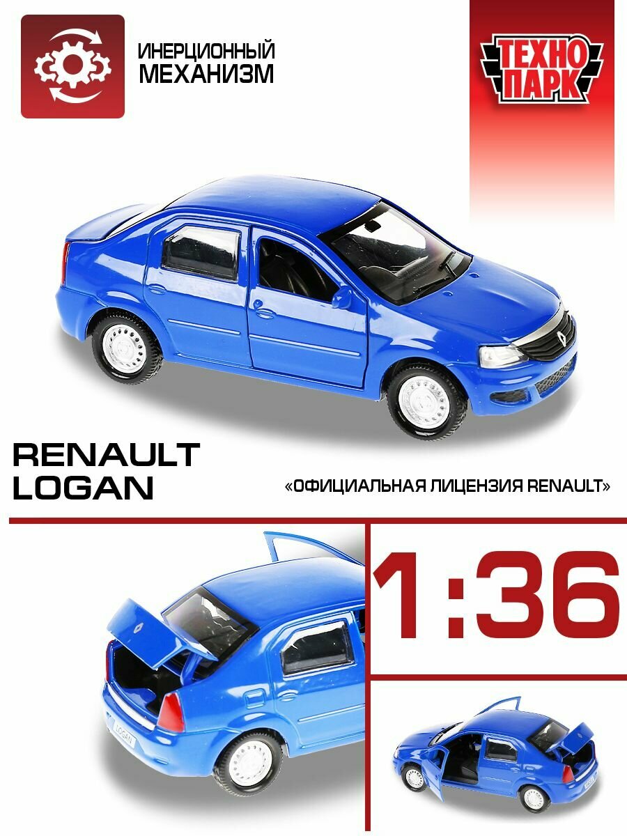 Модель Инерционная Технопарк Renault Logan (12см, металл, открываются двери, синий, в коробке) LOGAN-BU, (Shantou City Daxiang Plastic Toy Products Co., Ltd)