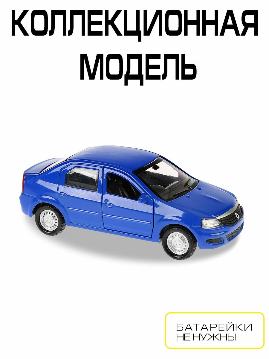 Машинка детская Renault Logan 12 см, Технопарк, синяя, открываются двери и багажник, металлический корпус