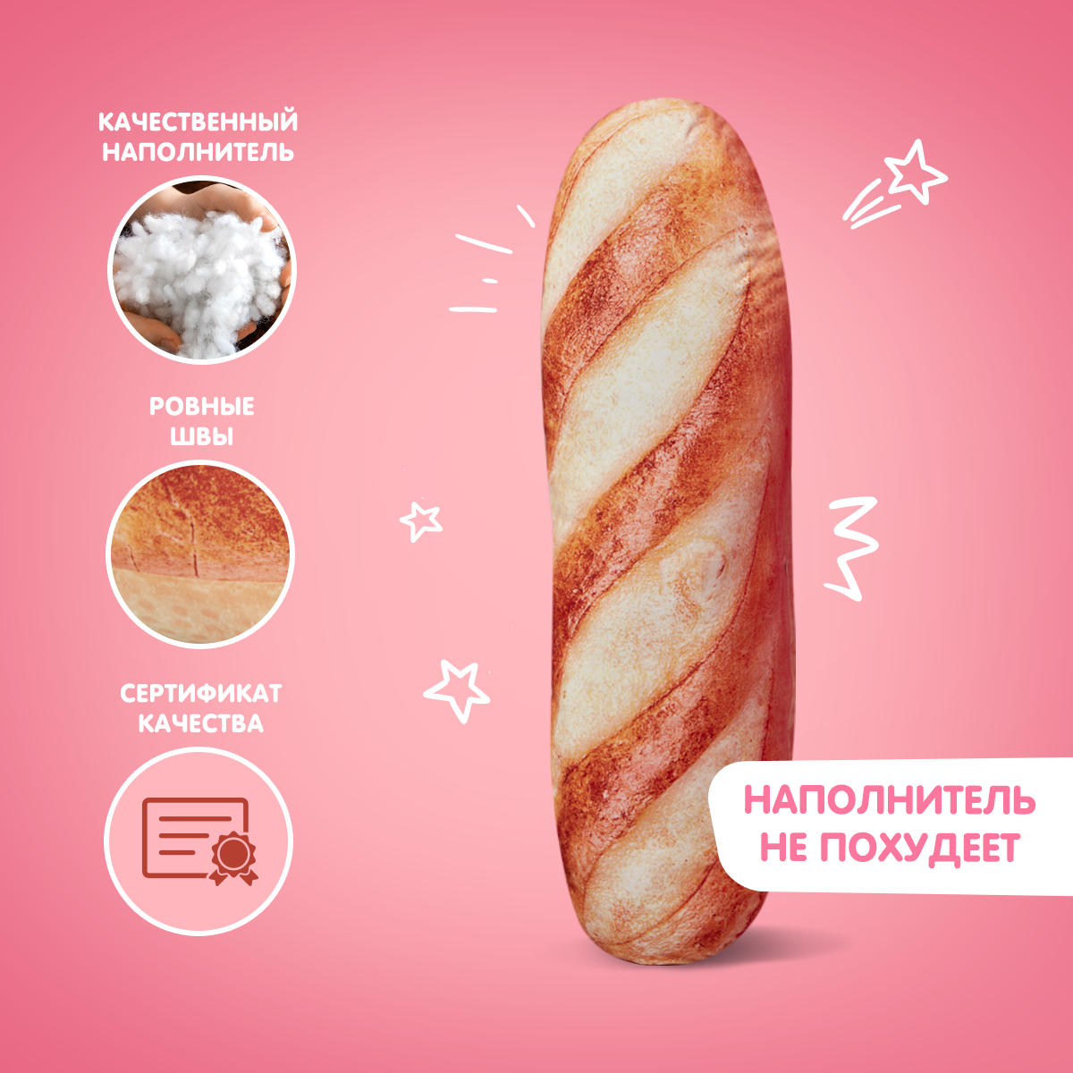 Мягкая игрушка подушка Totty toys длинный кот батон 130 см, розовый