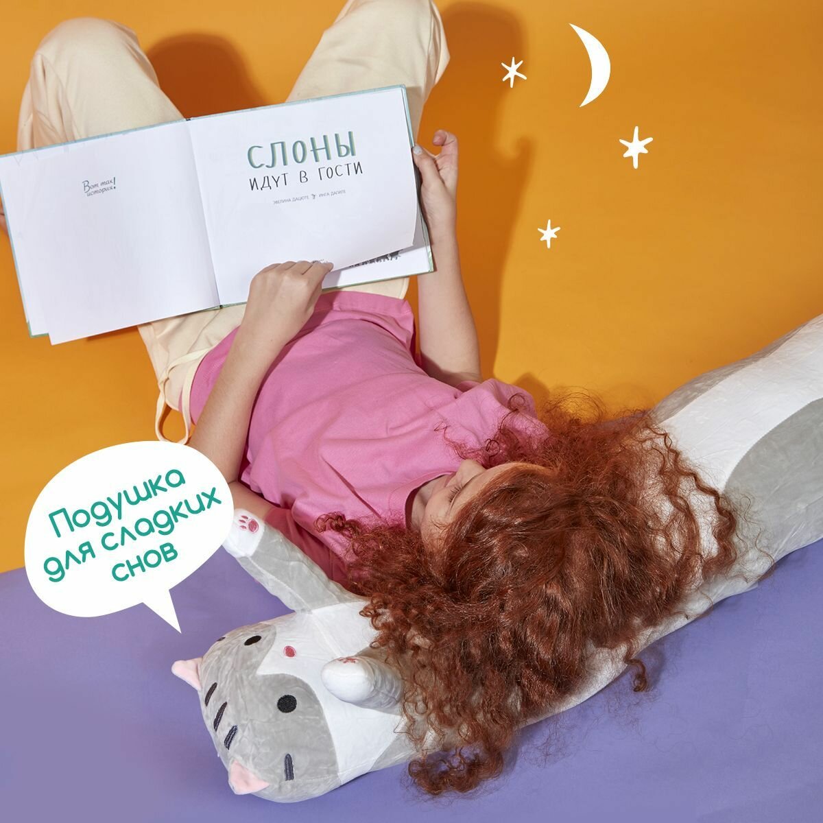 Мягкая игрушка подушка Totty toys длинный кот батон 110 см, рыжий