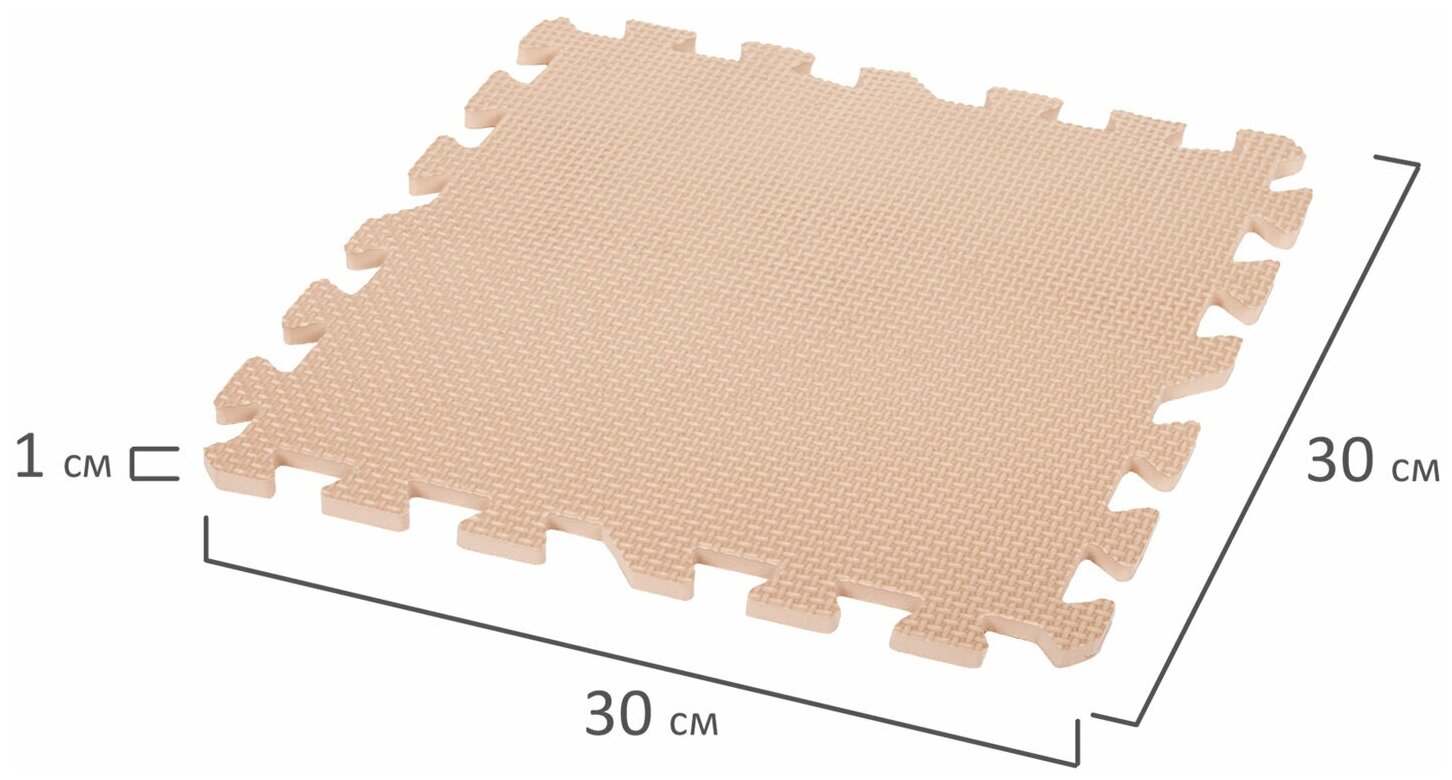 Коврик-пазл напольный Юнландия, 0,9х0,9м, мягкий, бежевый, 9 элементов 30х30см, толщина 1см (664661)