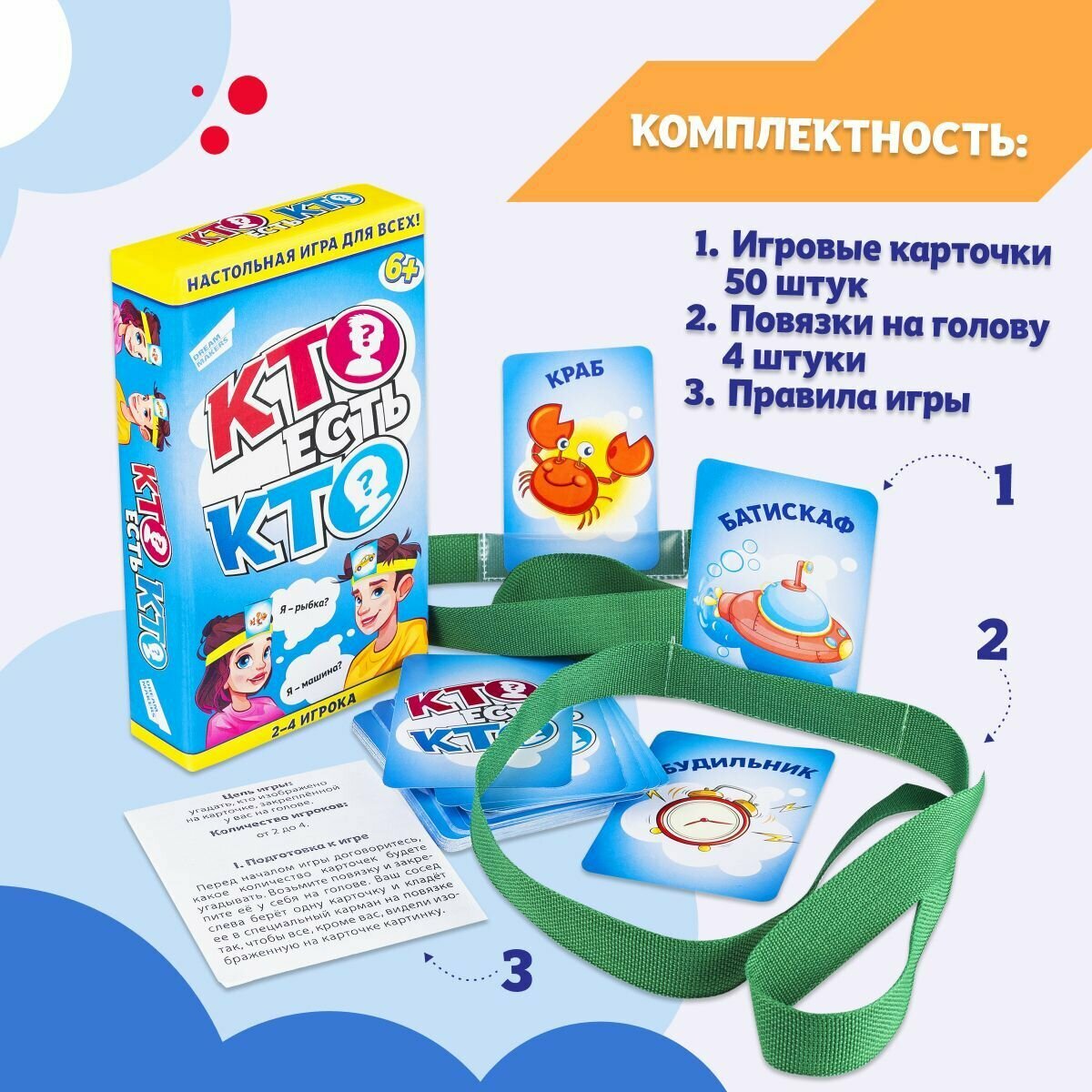 Карточная игра Dream Makers "Кто есть кто?" 4 повязки, 50 карточек (2108C) интересное: