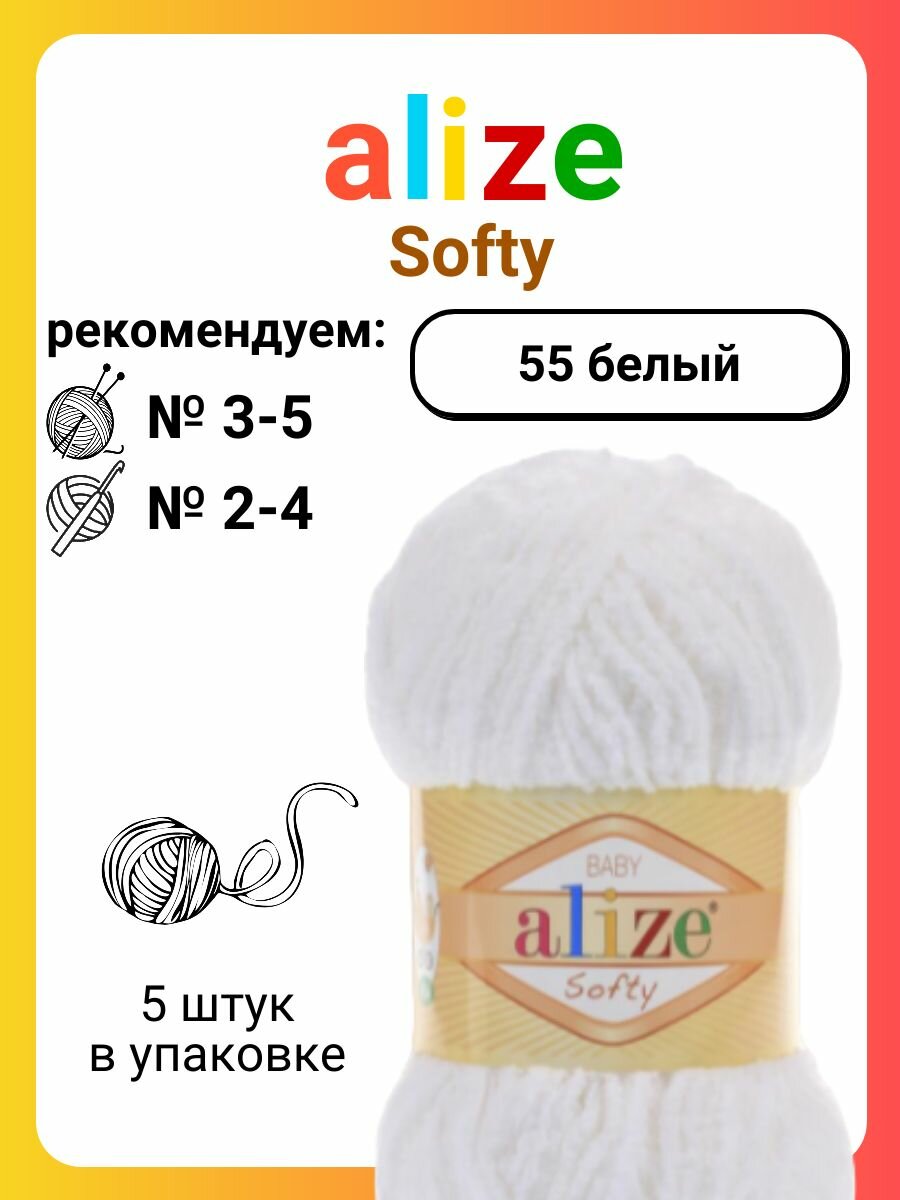 Пряжа Alize Softy (Ализе Софти) - 3 мотка Цвет: 55, Белый 100% микрополиэстер 50 г / 115 м