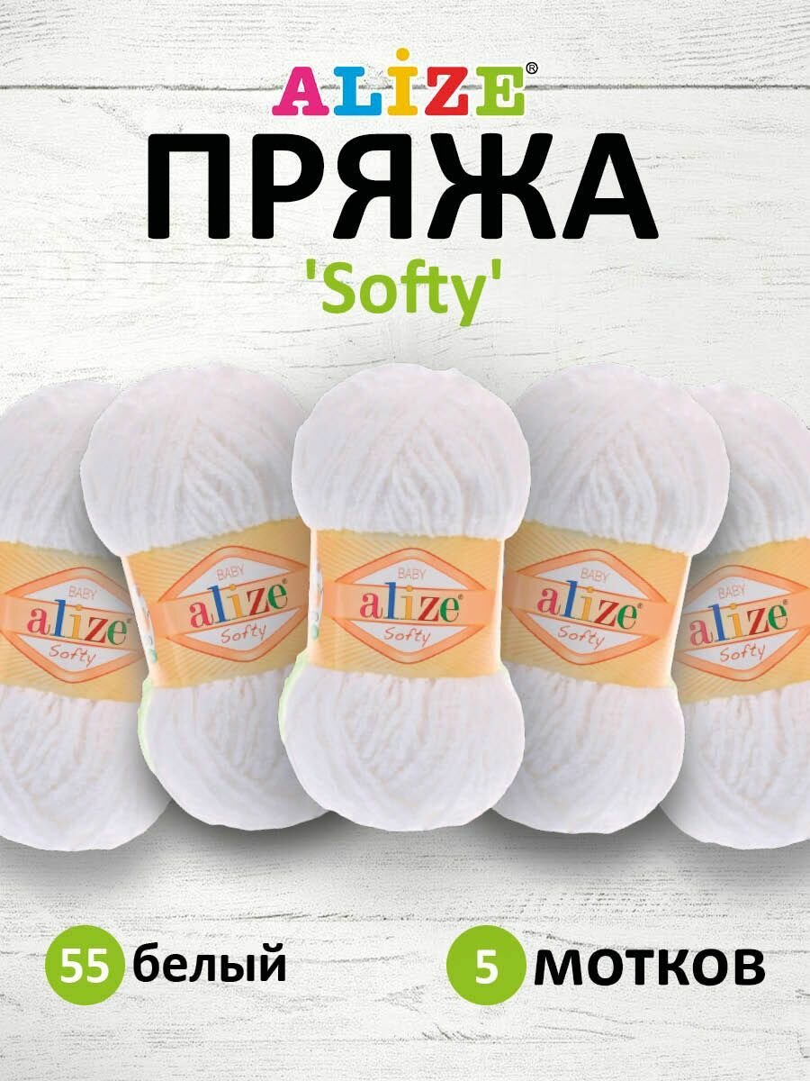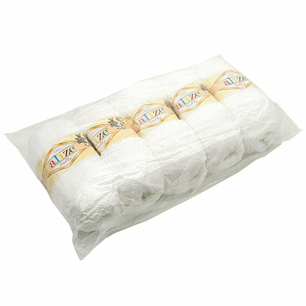 Пряжа ALIZE SOFTY, белый - 55, 100% микрополиэстер, 5 мотков, 50 г, 115 м.