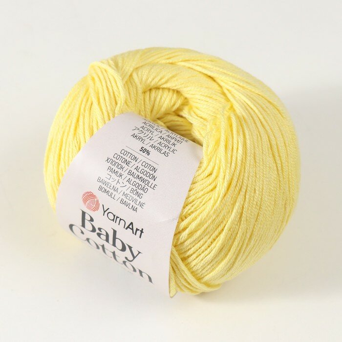 Купить Пряжа YarnArt Baby cotton светло-желтый (431), 50%хлопок/50%акрил, 165м, 50г, 1шт