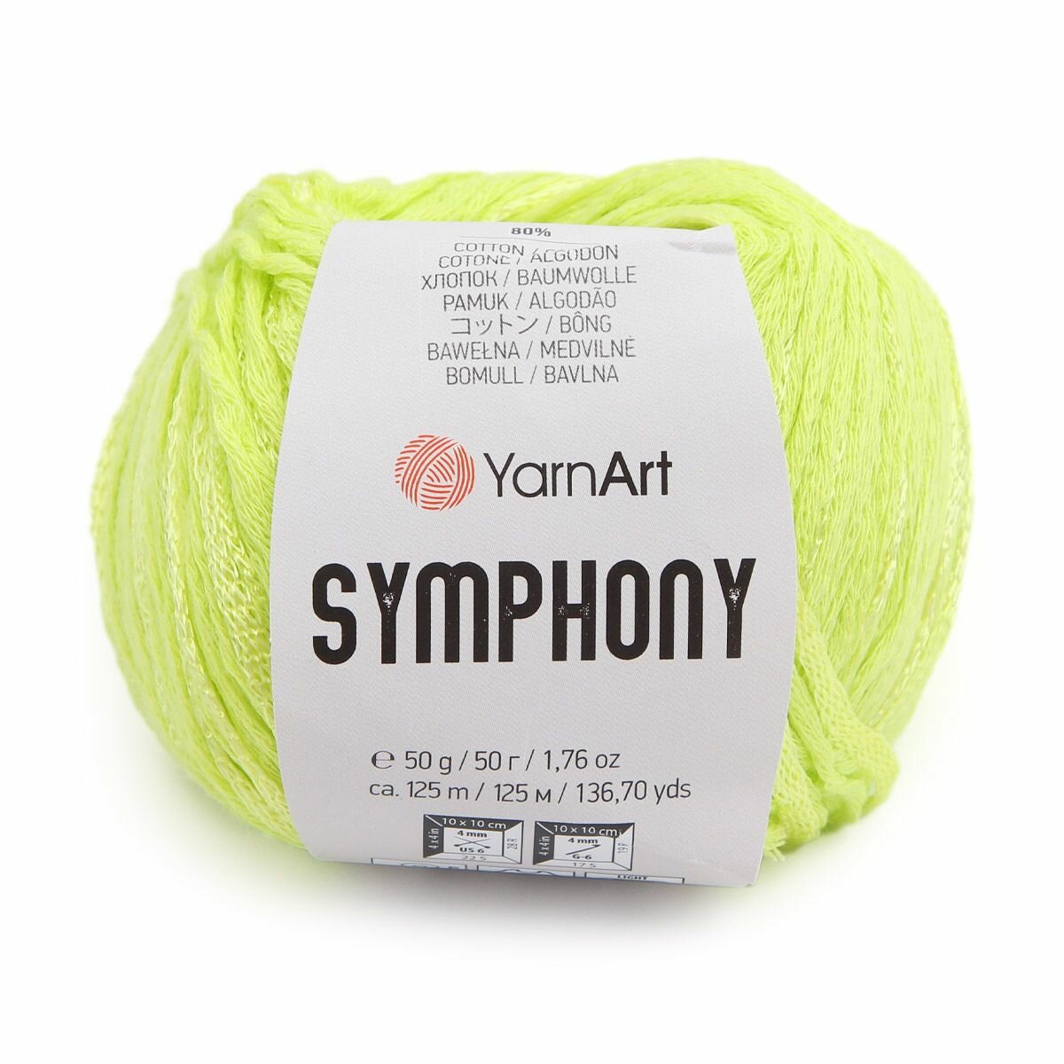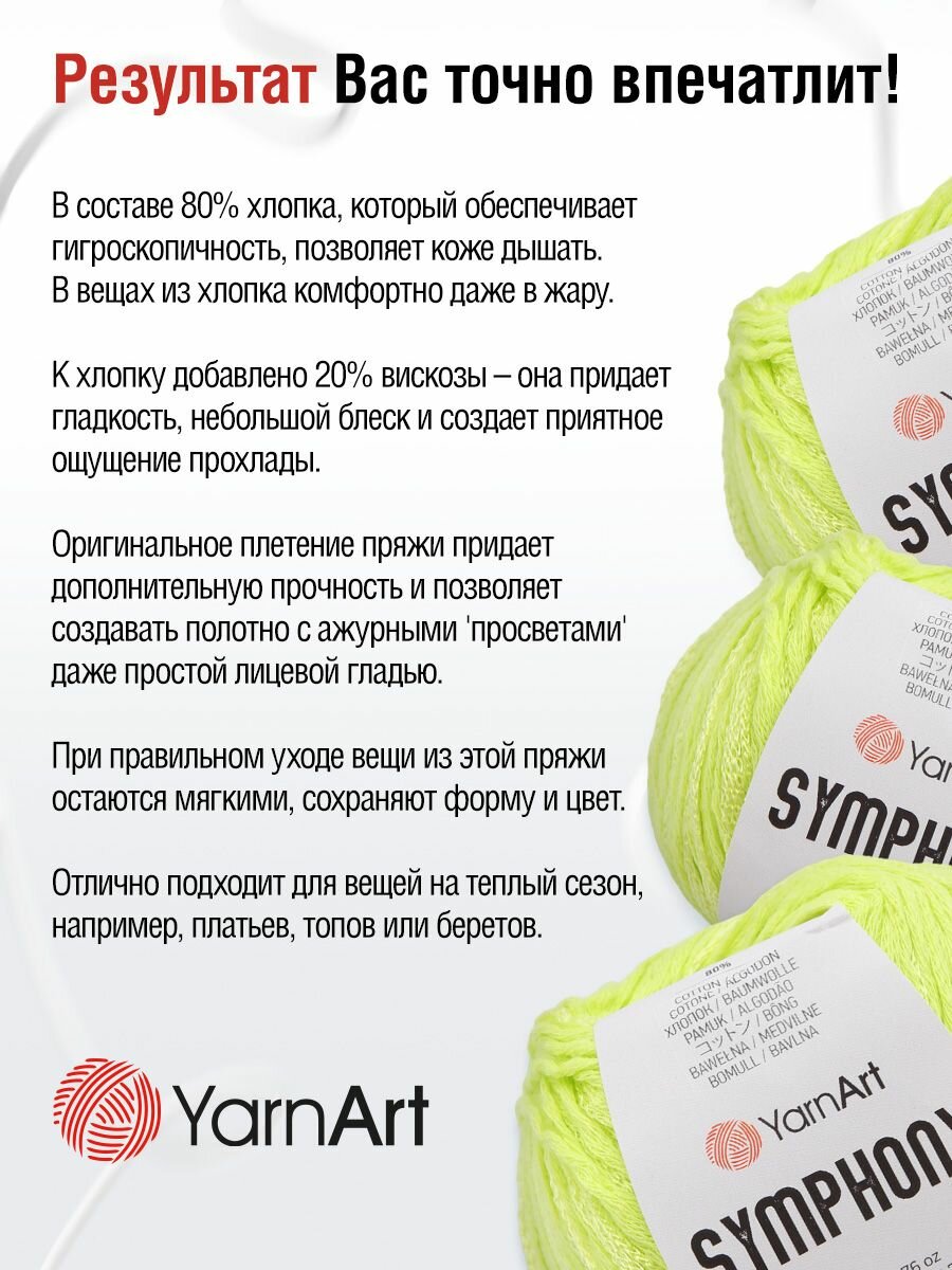 СохранитьПряжа YarnArt Symphony (Симфония) - 10 мотков Цвет: 2121 салатовый 80% хлопок, 20% вискоза, 50г 125м интересное: