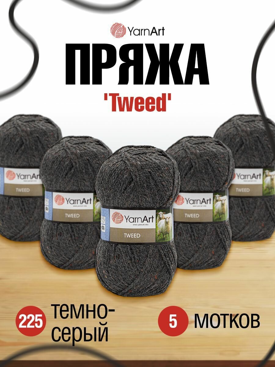 Купить Пряжа для вязания YarnArt 'Tweed', 100г, 280м (30% шерсть, 60% акрил, 10% вискоза) (225 темно-серый), 5 мотков