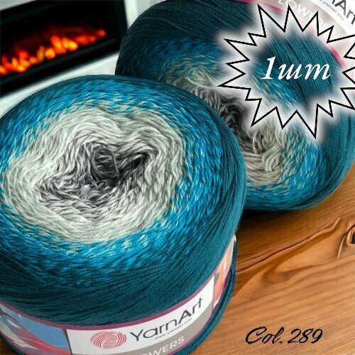 Купить Пряжа YarnArt Flowers сине-бирюзовый (289), 55%хлопок/45%акрил, 1000м, 250г, 1шт