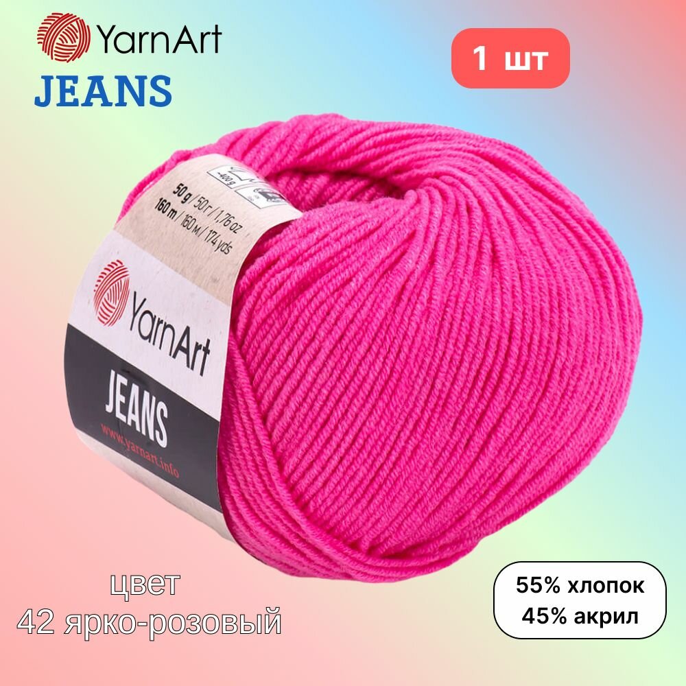 Купить Пряжа YarnArt Jeans, цвет ярко-розовый 42, 1 моток, 50г/160м, состав 45% акрил, 55% хлопок, ярнарт джинс