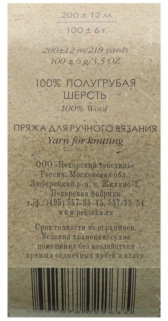 Пряжа Овечья шерсть Пехорка (166), 100 г, 200 м, 100% шерсть, (2 шт.)