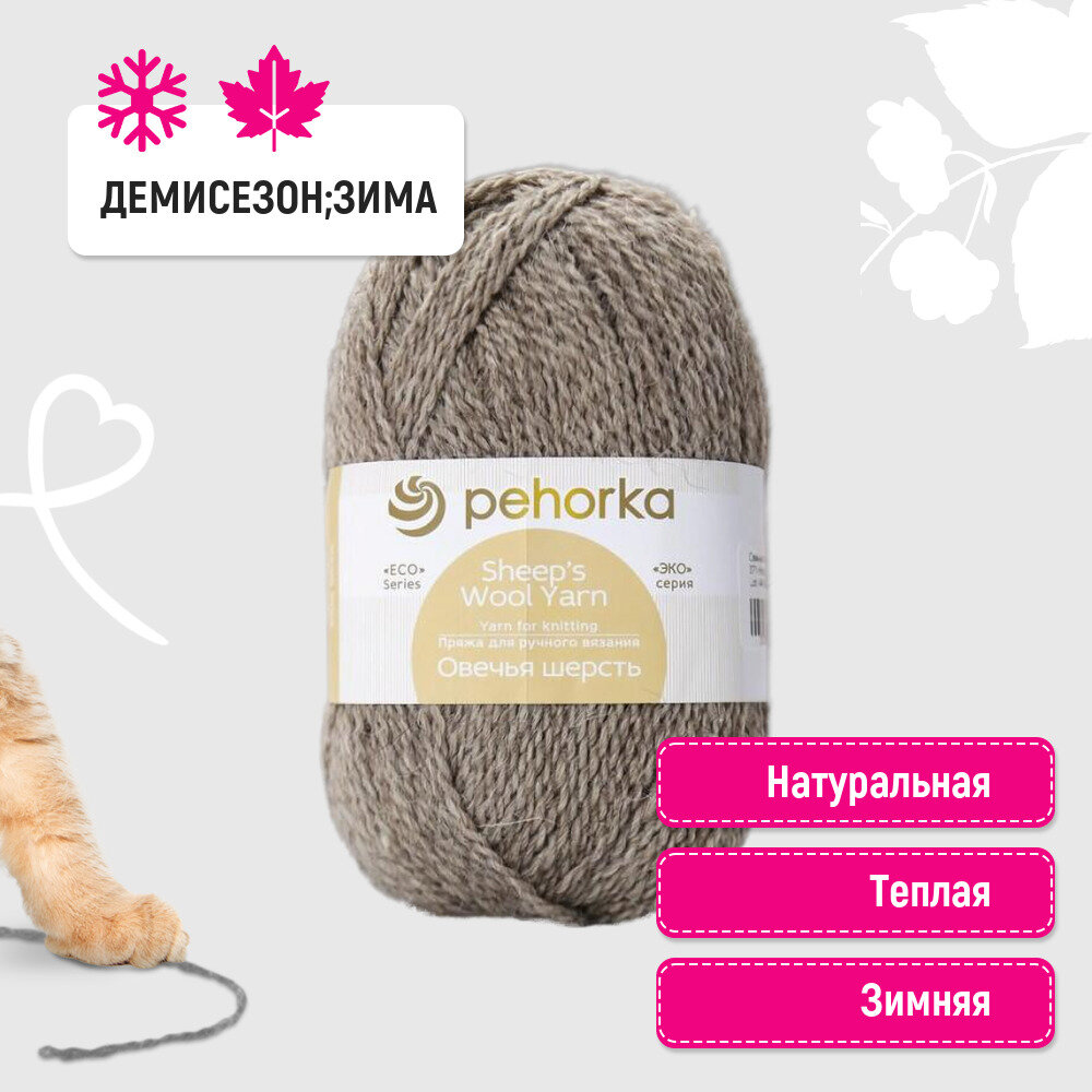 Пряжа Пехорка Овечья шерсть натуральный/светлый (530), 100%шерсть, 200м, 100г, 1шт