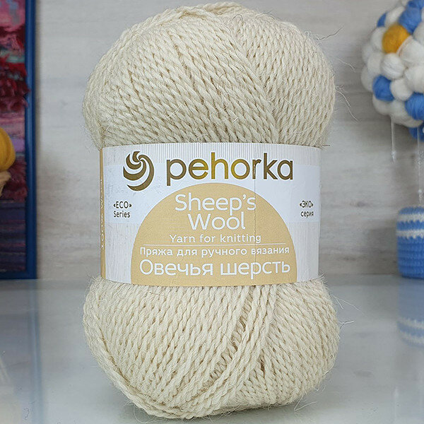Пряжа для вязания крючком, спицами Пехорка Pehorka Овечья шерсть средняя, шерсть 100%, цвет 530, светлый натуральный, 10 шт. по 100 г, 200 м