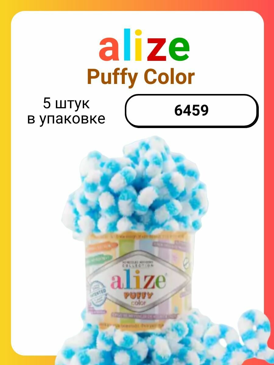 Пряжа PUFFY COLOR (Alize), принт - 6450, 100% микрополиэстер, 5 мотков, 100 г, 9 м.