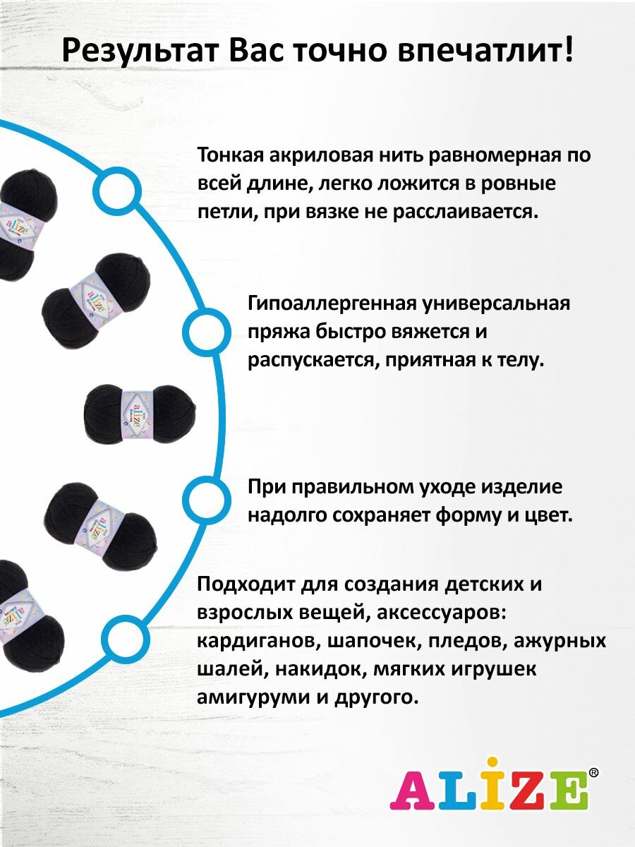 Пряжа Alize Sekerim Bebe Черный (60) 5 мотков 100 г/320 м (100% акрил) ализе шекерим бебе