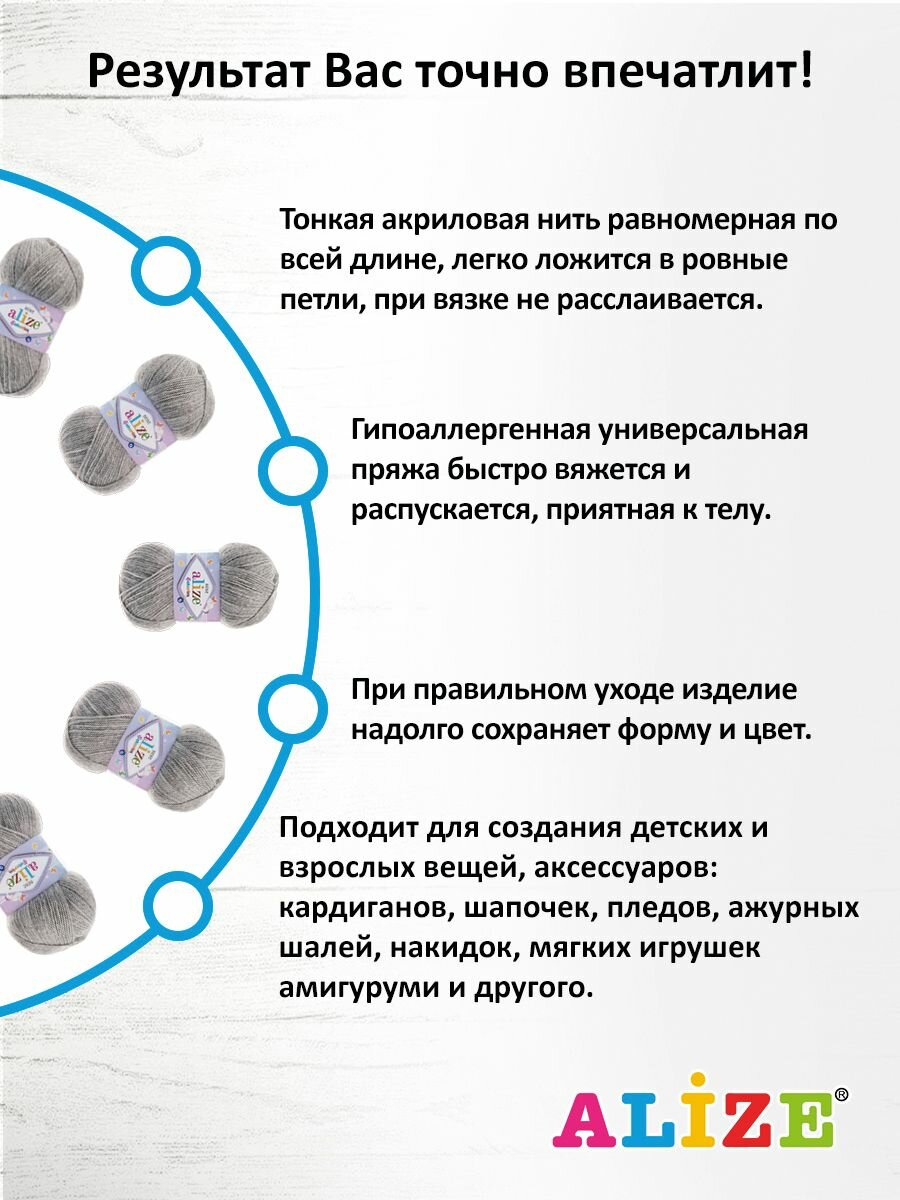 СохранитьПряжа для вязания ALIZE 'Sekerim Bebe', 100г, 320м (100% акрил) (21 серый меланж), 5 мотков интересное: