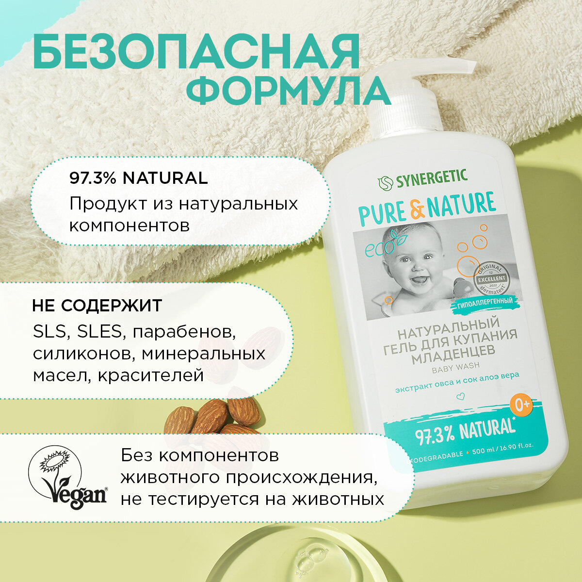 СохранитьГель для купания младенцев 0+ натуральный и гипоаллергенный SYNERGETIC, 500 мл интересное:
