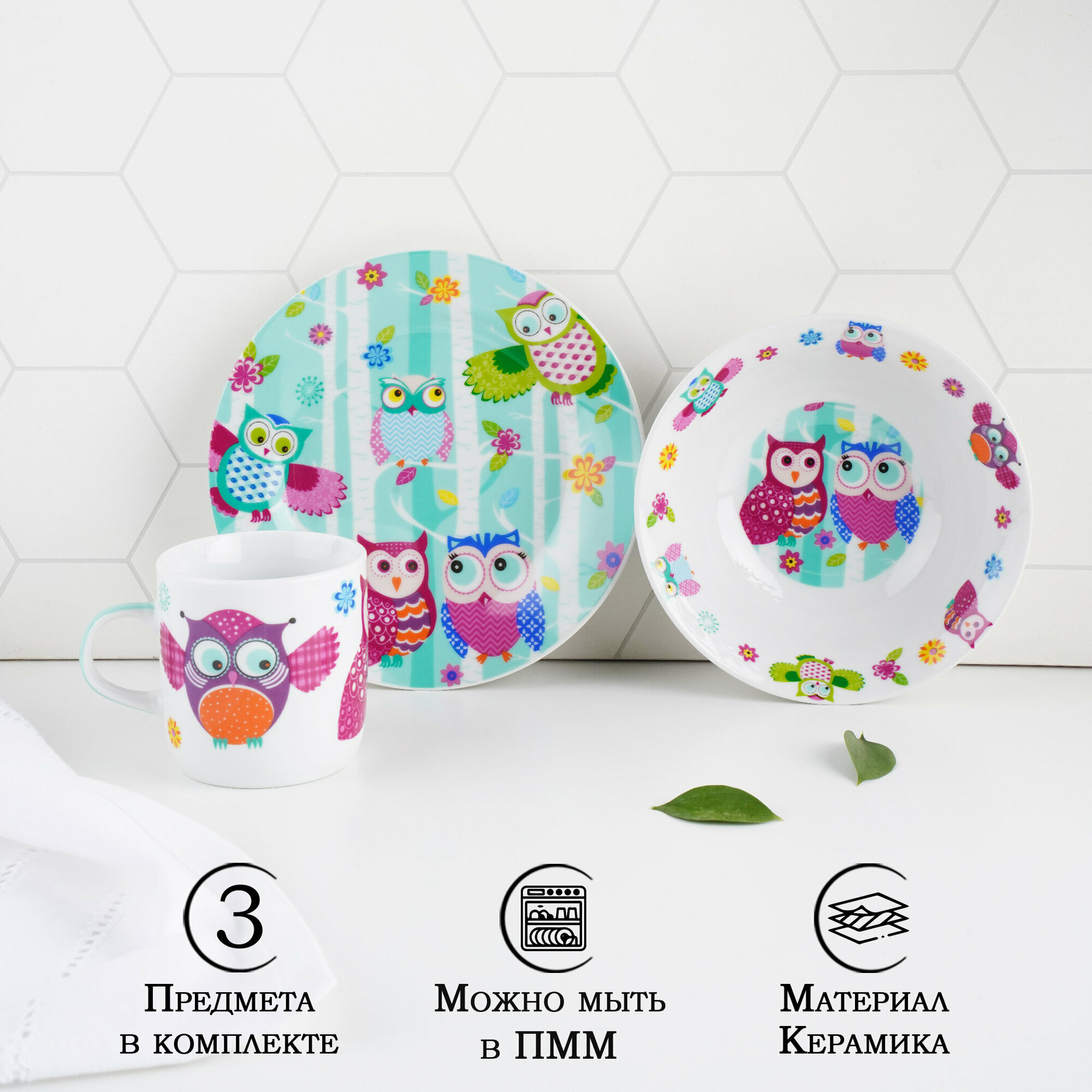 Купить Набор детской посуды Доляна 3 предмета "Совушки" (3850494)