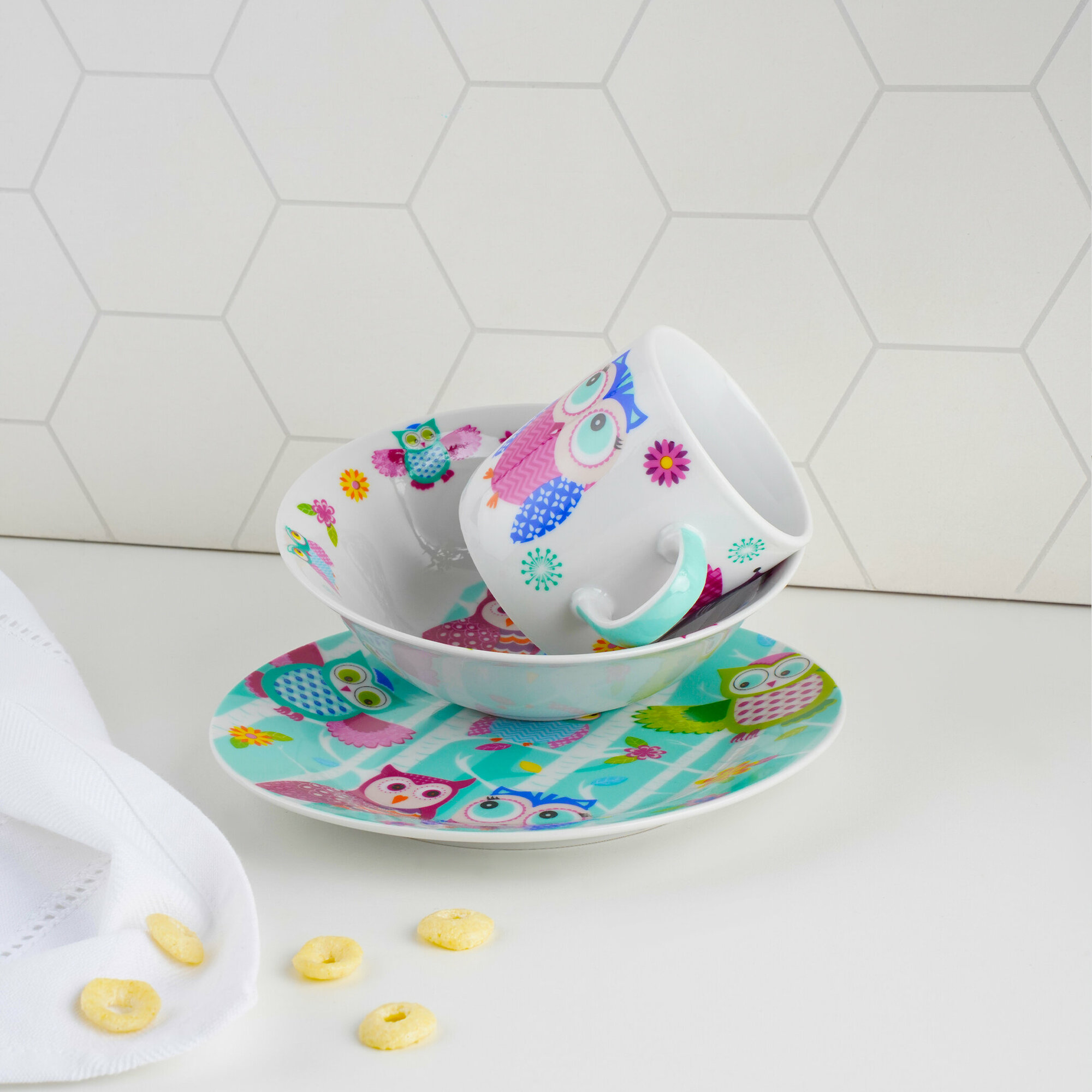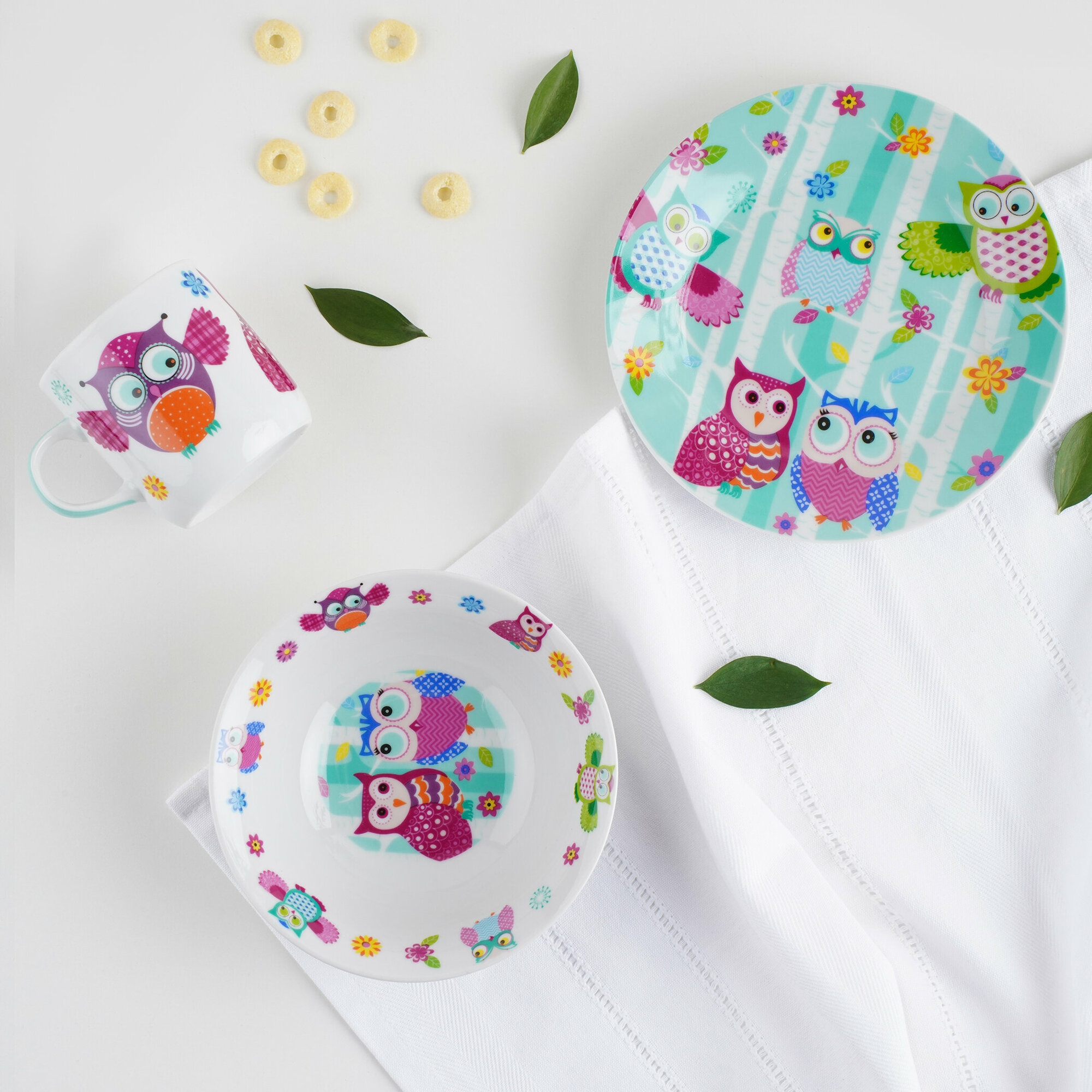 Набор детской посуды Доляна «Совы тинейджеры», 3 предмета: кружка 230 мл, миска 400 мл, тарелка 18 см
