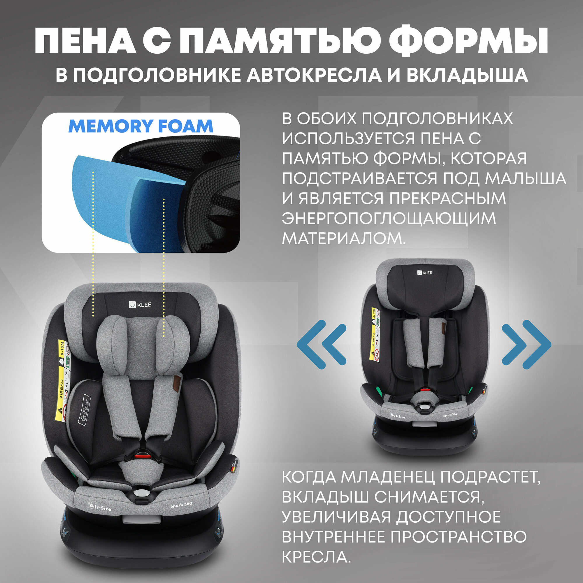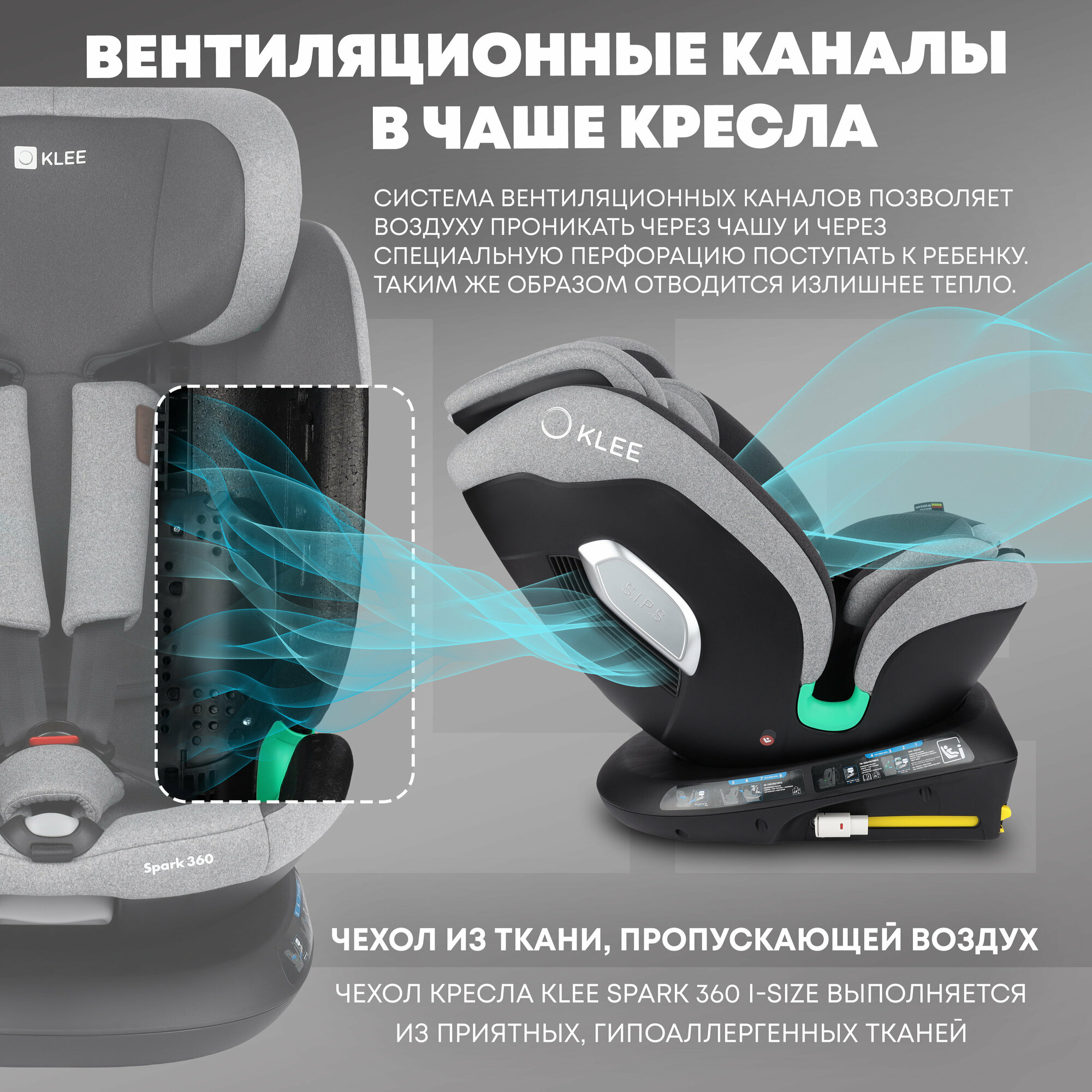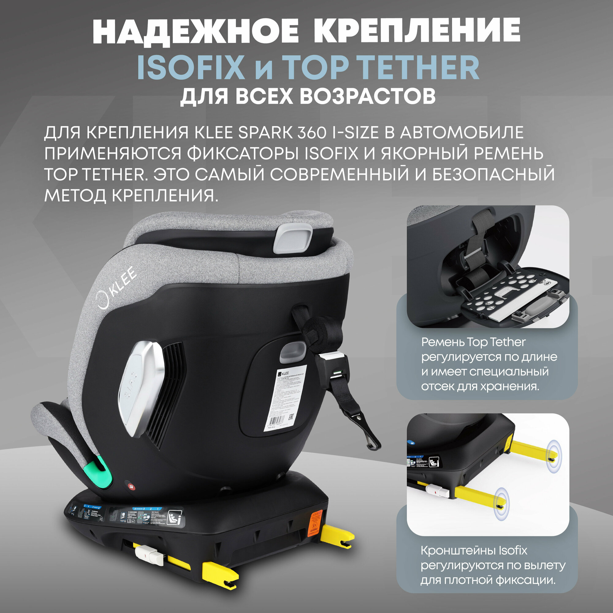 KLEE Spark i-Size 360 Titan Grey автокресло от 0 до 36 кг с IsoFix и легким вращением одной рукой интересное: