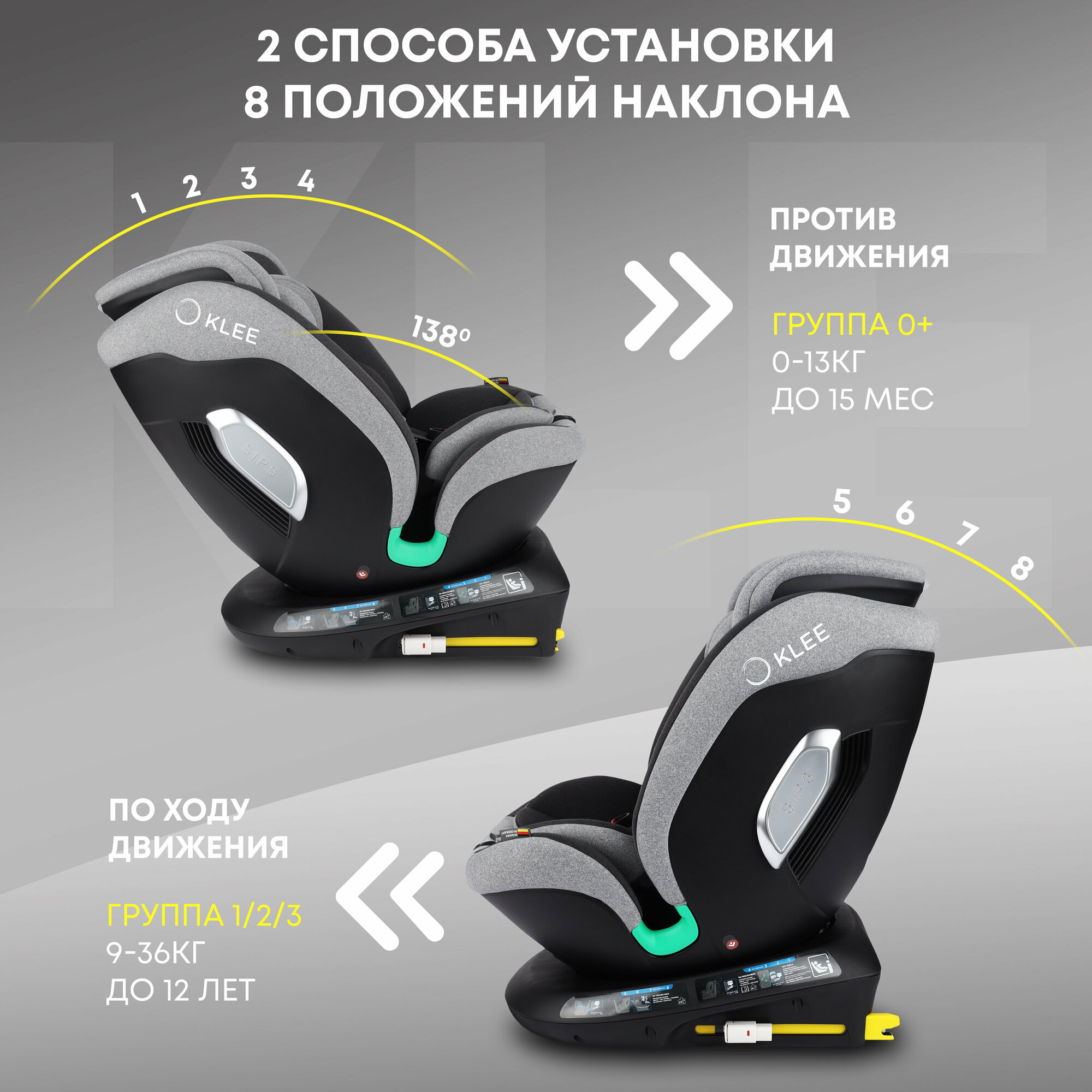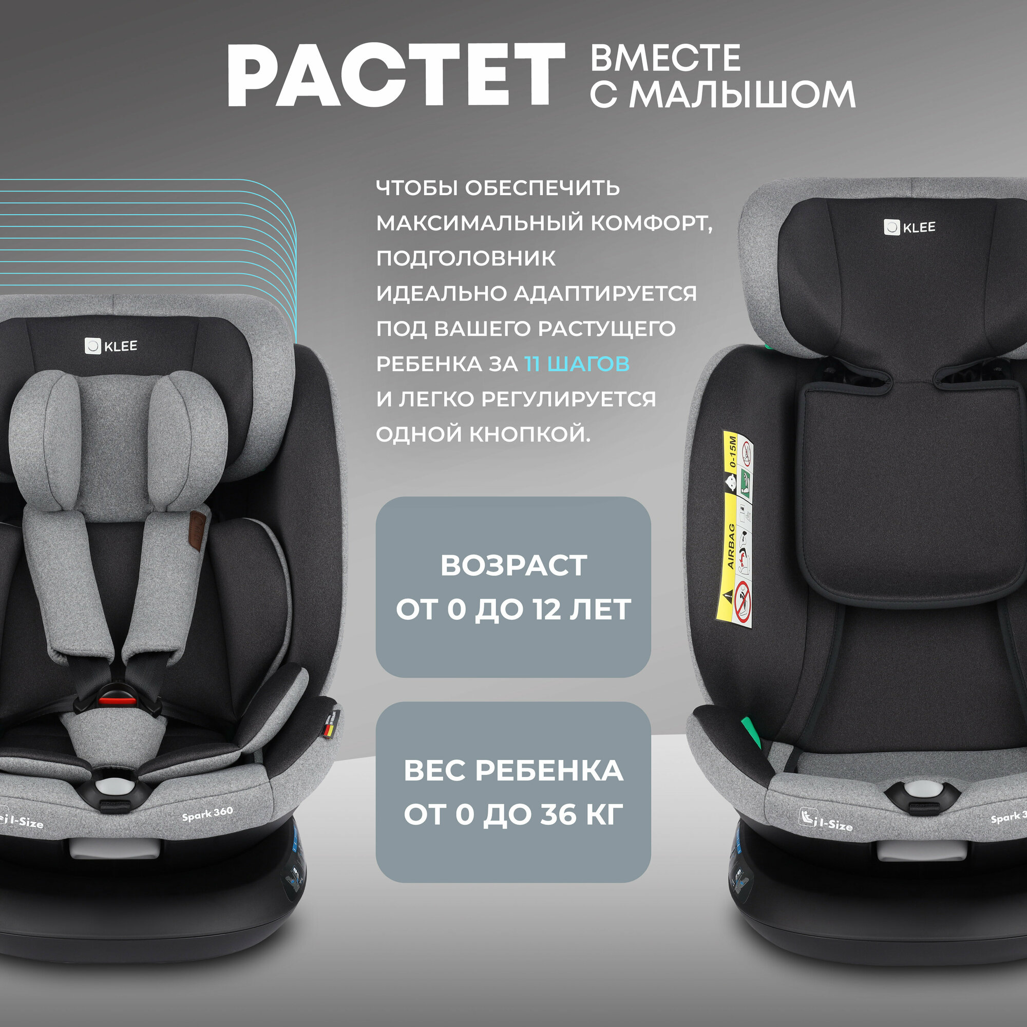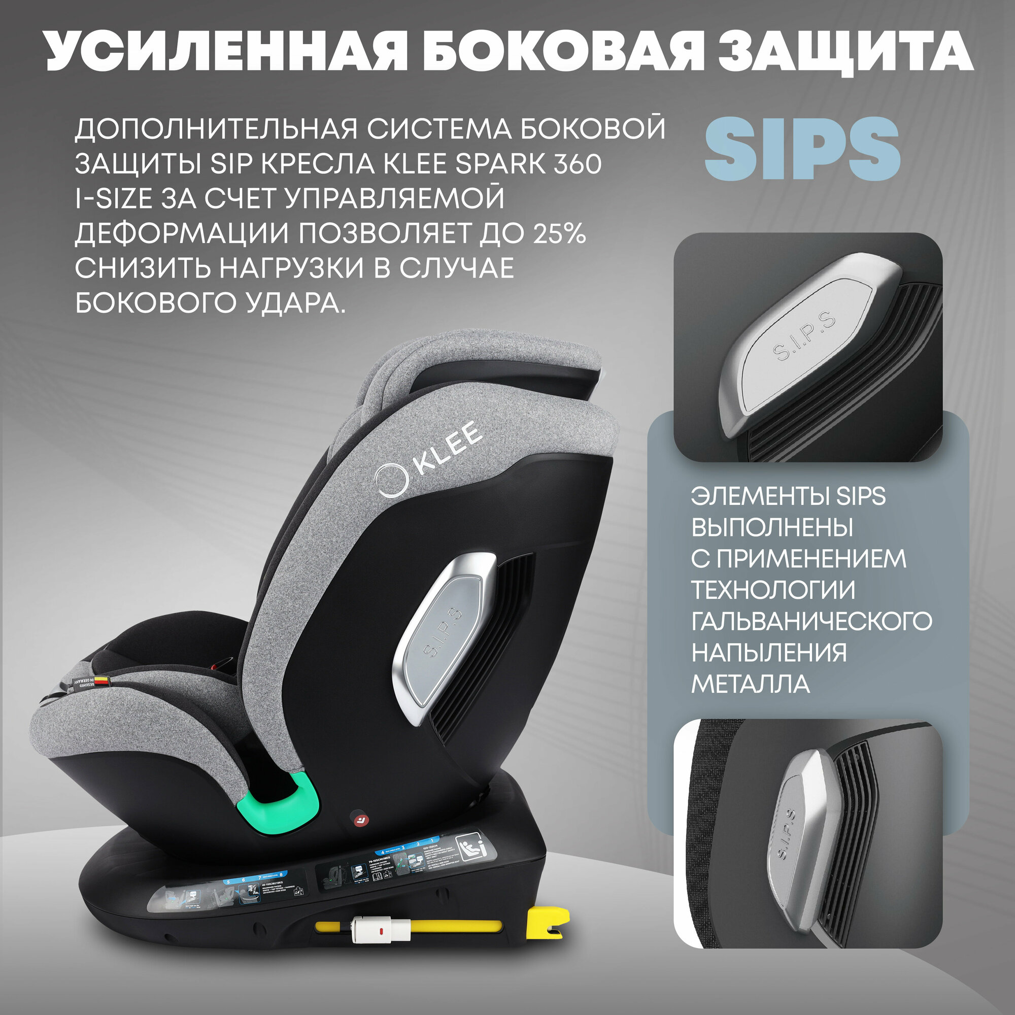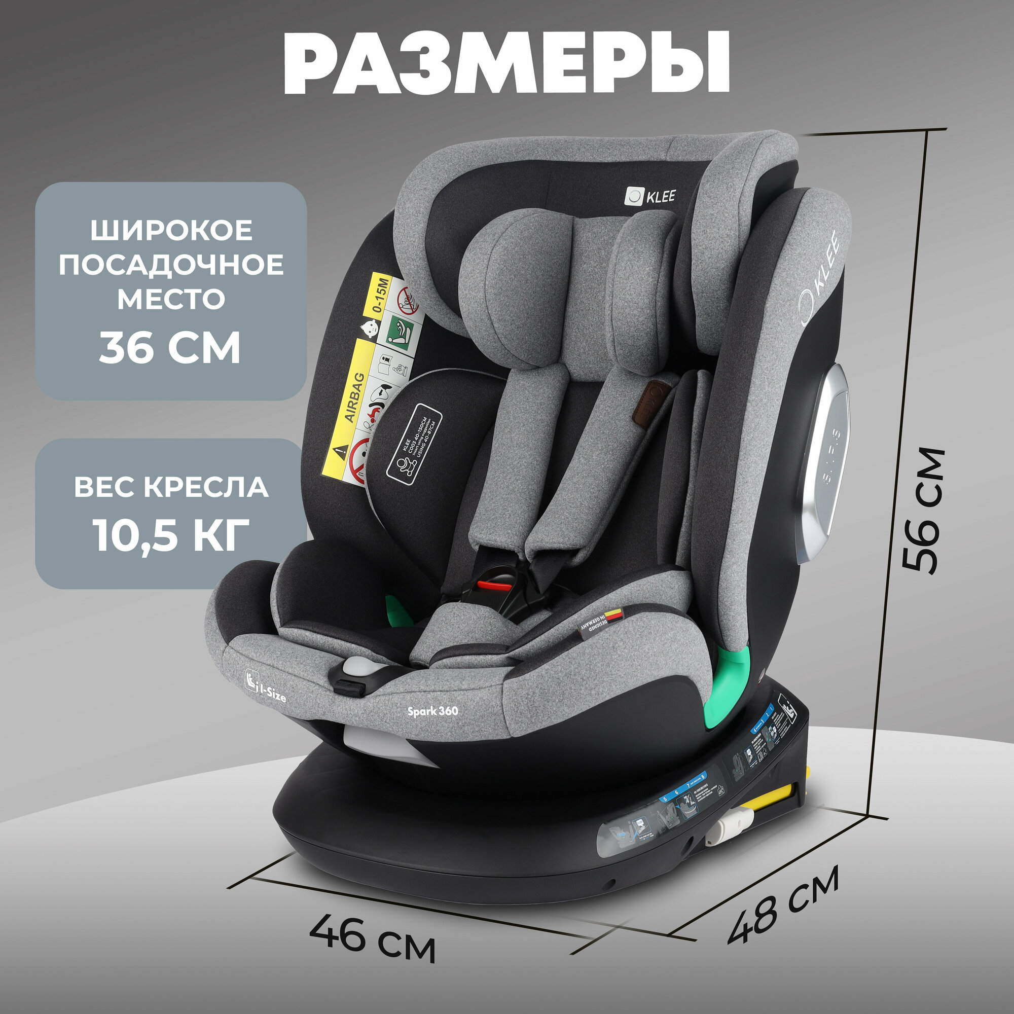Купить KLEE Spark i-Size 360 Titan Grey автокресло от 0 до 36 кг с IsoFix и легким вращением одной рукой