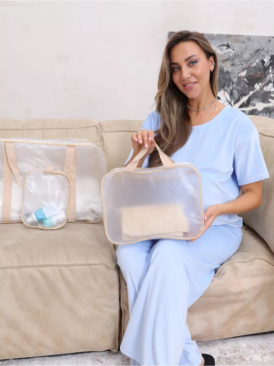 Купить Прозрачные сумки матовые в роддом 3 шт., бренд "Золотой октябрь", цвет бежевый