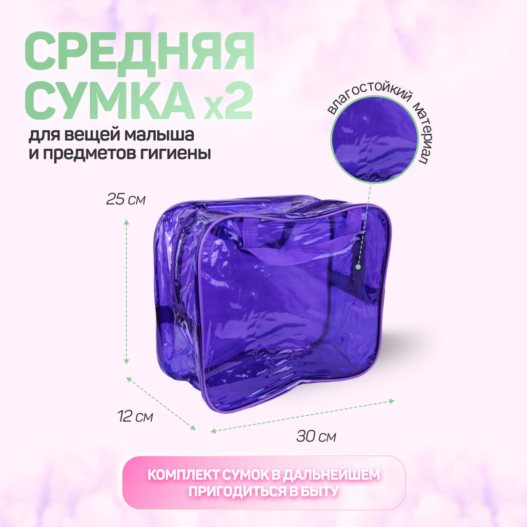 СохранитьСумка в роддом готовая для мамы и малыша с наполнением "Комфорт+", 34 предмета, 4 сумки, фиолетовая интересное: