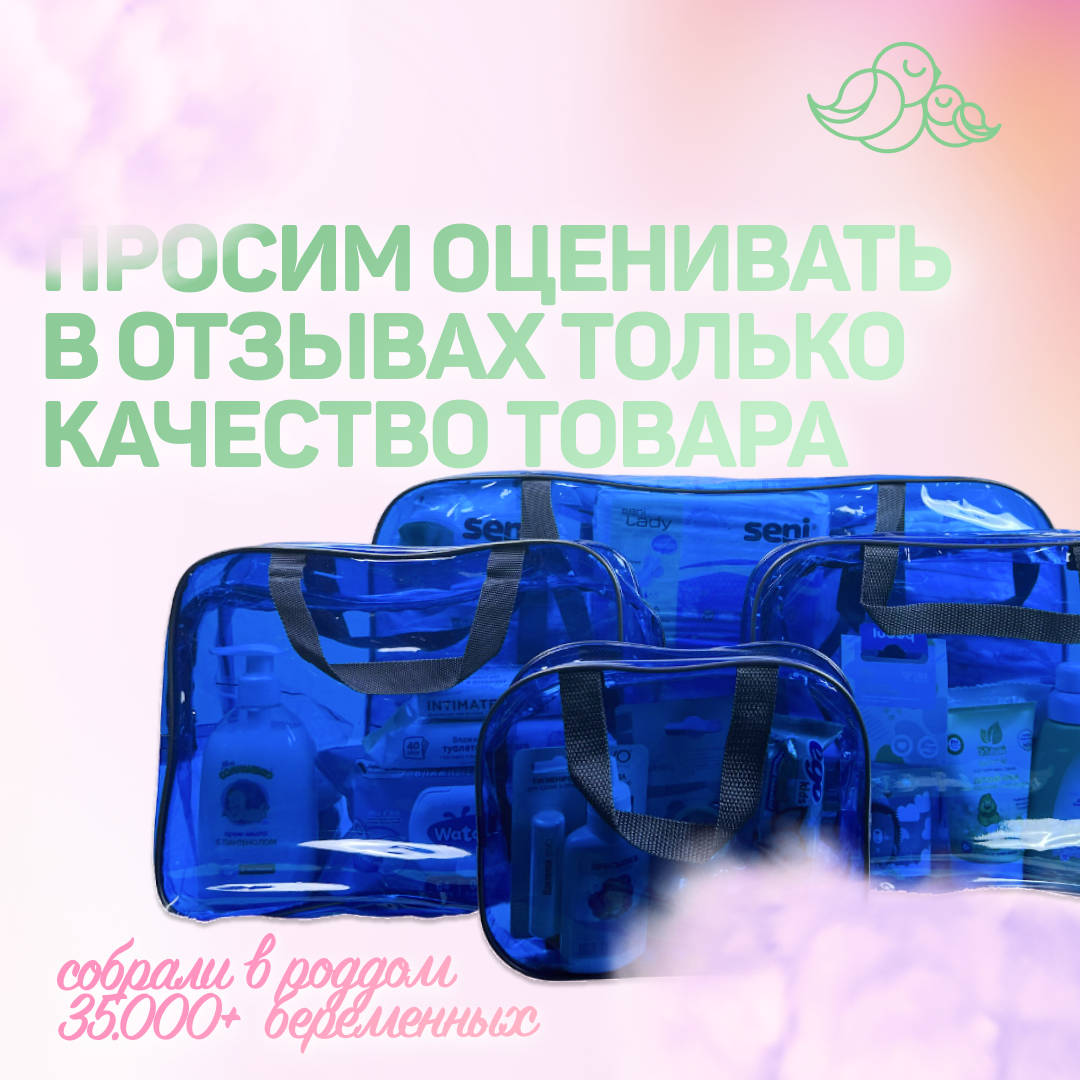 СохранитьСумка в роддом готовая для мамы и малыша с наполнением "Комфорт+", 34 предмета, 4 сумки, синяя интересное: