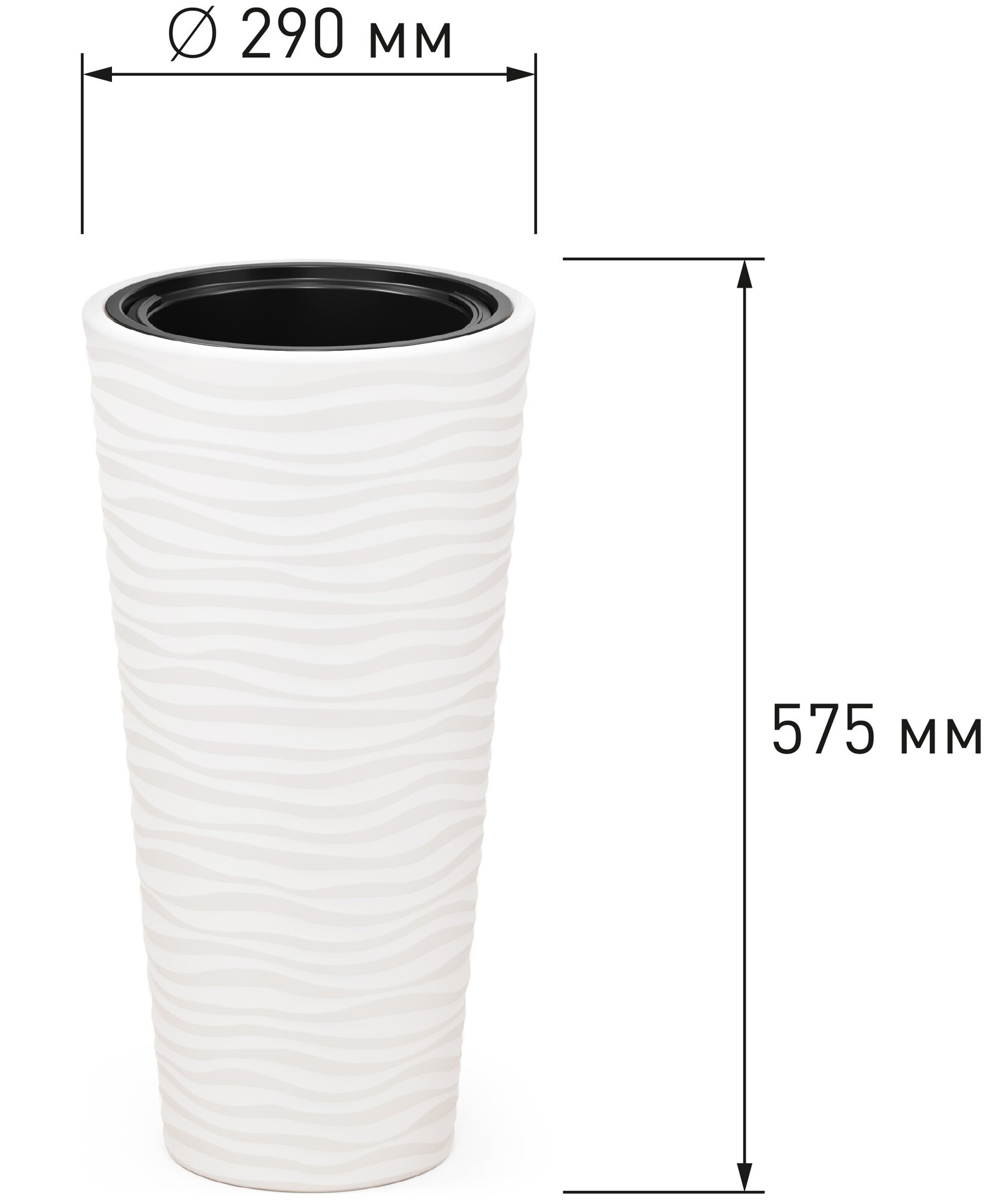 Кашпо "Оазис" 43л (со вставкой 10л) серый. Объемная текстура "волна" создает красивые блики на поверхности и придает изделию особый шарм