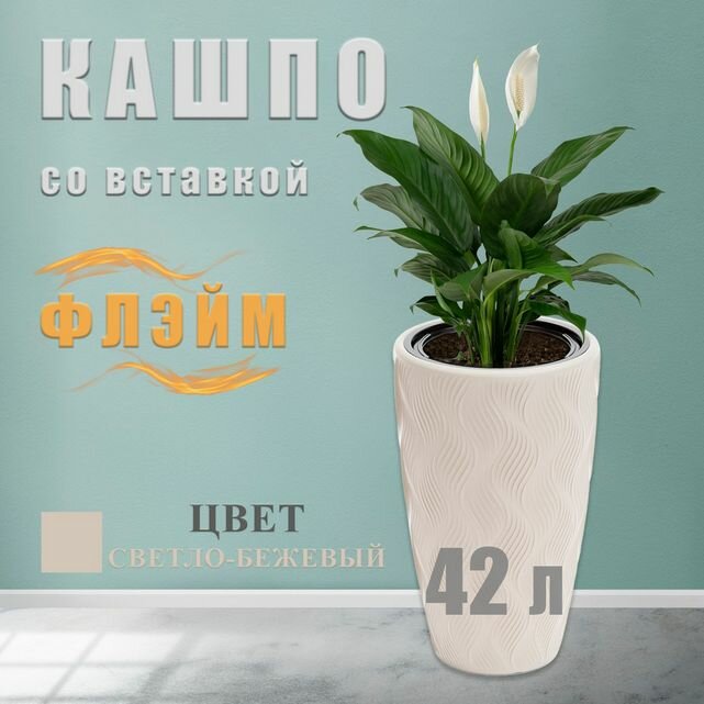 Кашпо "Флэйм" 61л (со вставкой 289х230мм) (св.бежевый)