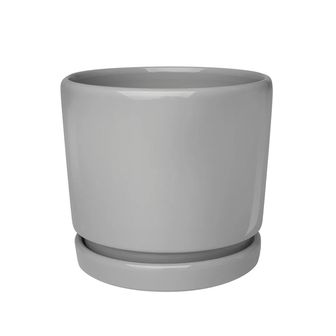 Горшок для цветов с литым поддоном / Керамический цветочный горшок 2,5 литра серый