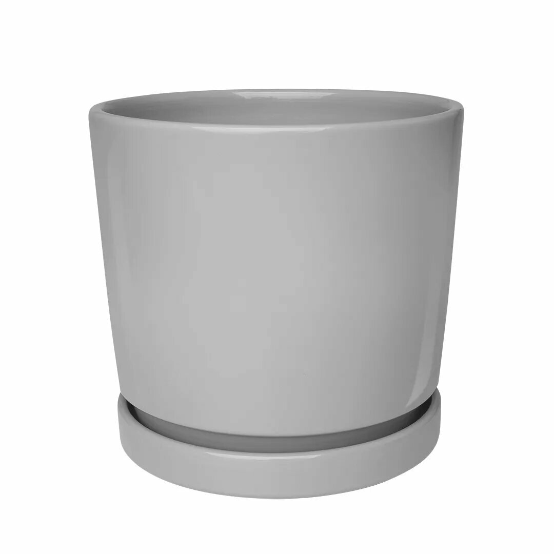 Горшок для цветов с литым поддоном / Керамический цветочный горшок 2,5 литра серый