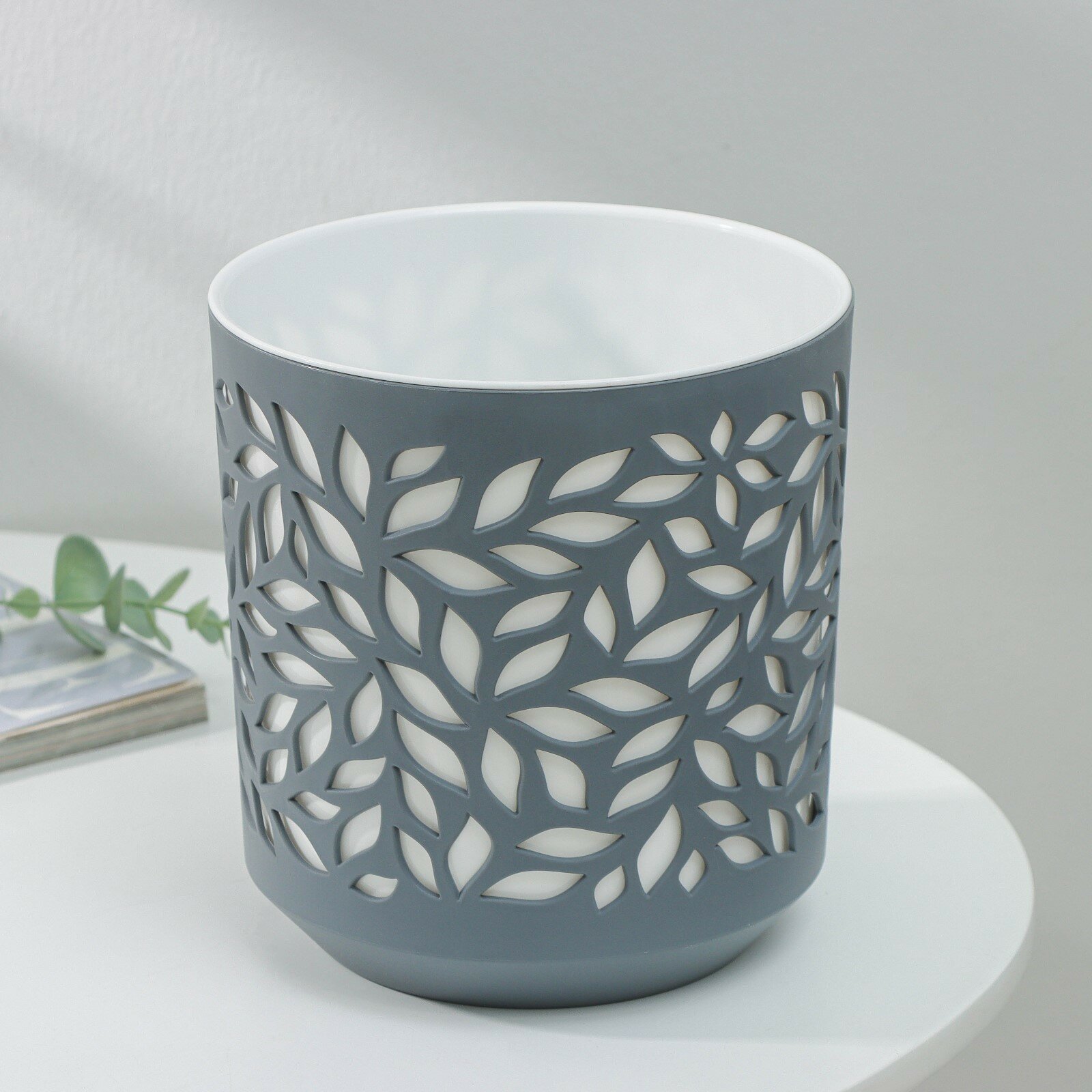 Кашпо для цветов пластиковое 2,5л d-16,2 см "Leaves" Серый/Белый