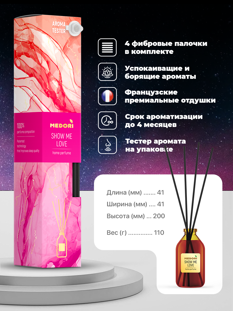 СохранитьАромадиффузор Medori Show Me Love - диффузор с палочками для дома интересное:
