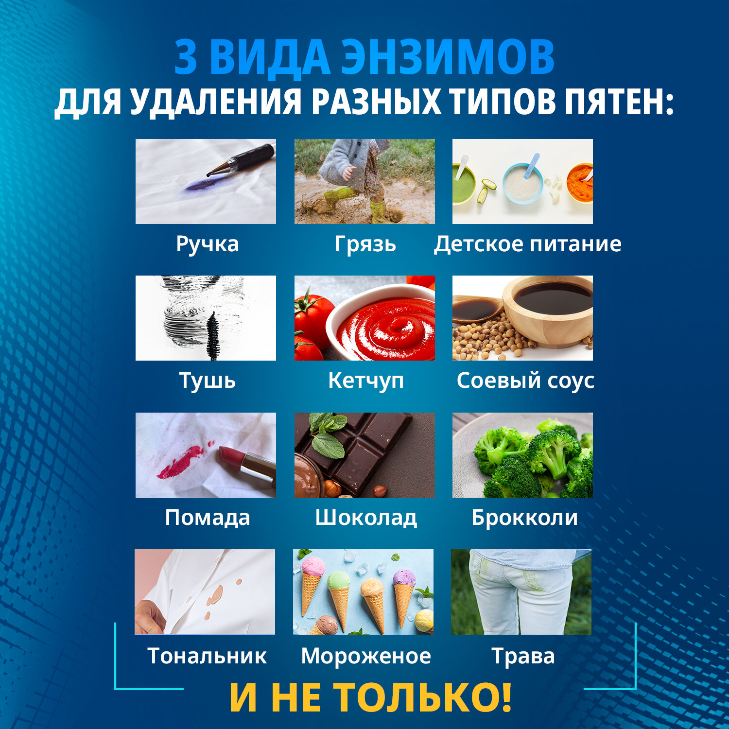 | Дополнительная информация | для белых и светлых тканей, для деликатных тканей, для спортивной одежды, для стойких загрязнений, для точечного застирывания, для хлопковых тканей, для цветных тканей, для черных и темных тканей, универсальное |