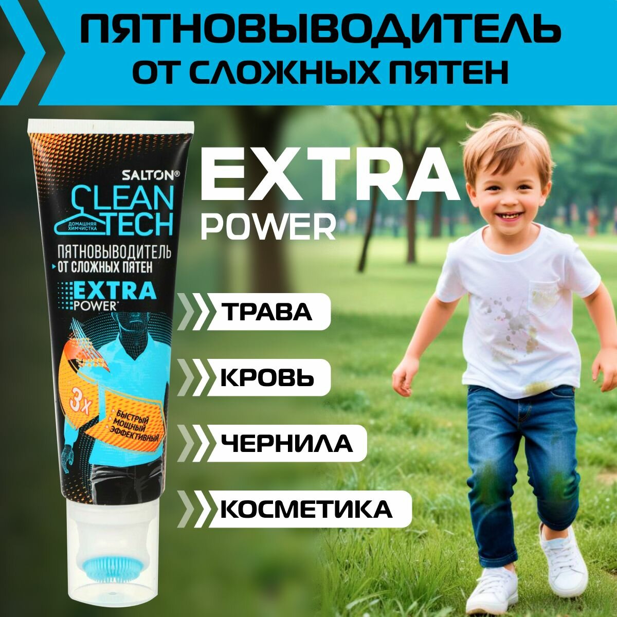 Купить Пятновыводитель Salton CleanTech EXTRA POWER от самых сложных пятен, 120 мл х 1 шт