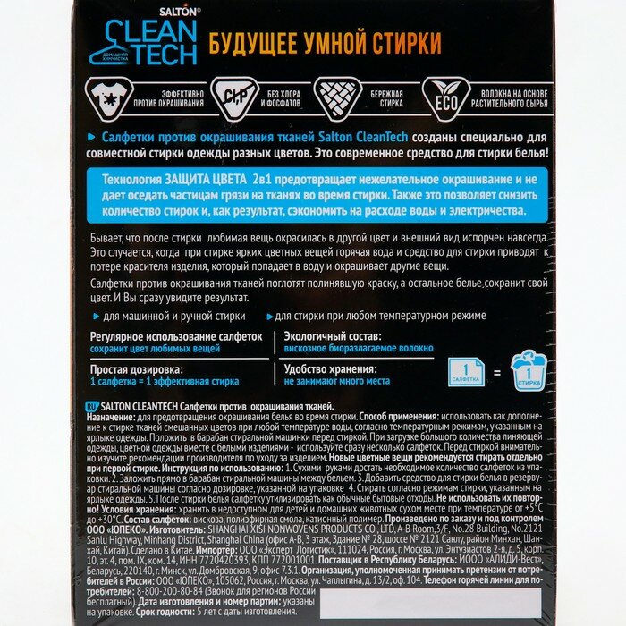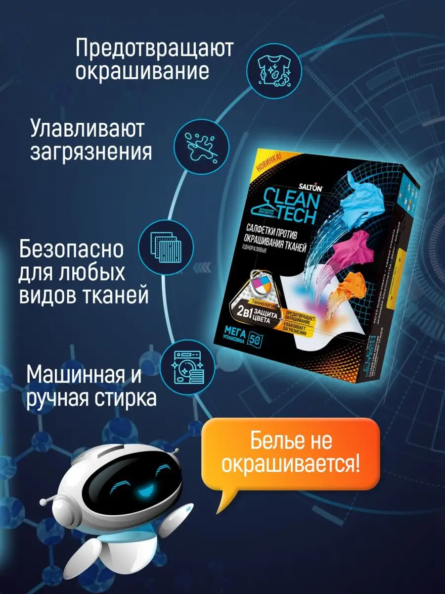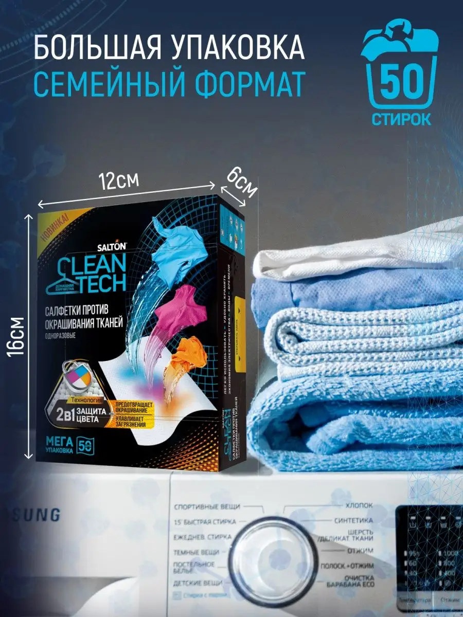 Салфетки для стирки Salton CleanTech Против Окрашивания Тканей 50 шт интересное: