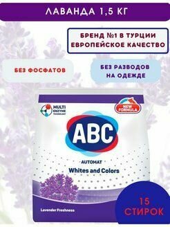 Стиральный порошок универсальный ABC Лаванда 1,5кг.