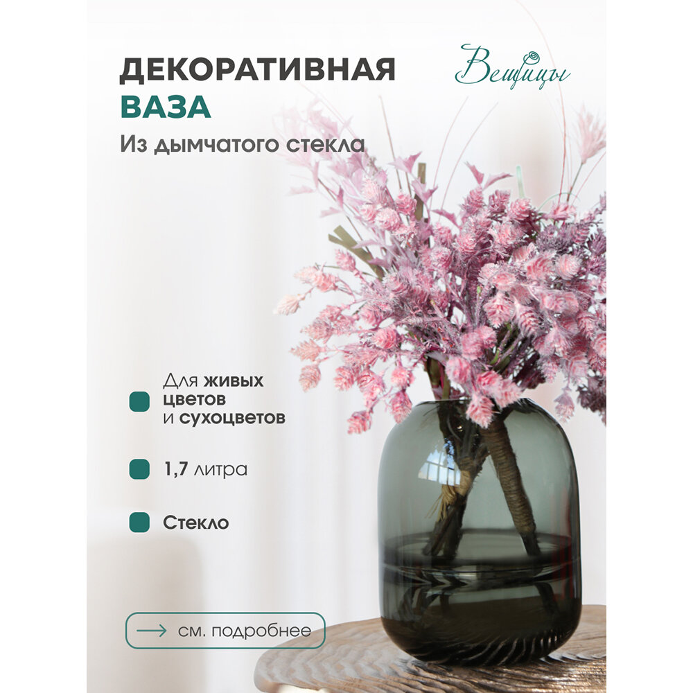 Ваза декоративная Вещицы CSA-6M, 13.5 х 13.5 х 17 см, стекло, серый интересное: