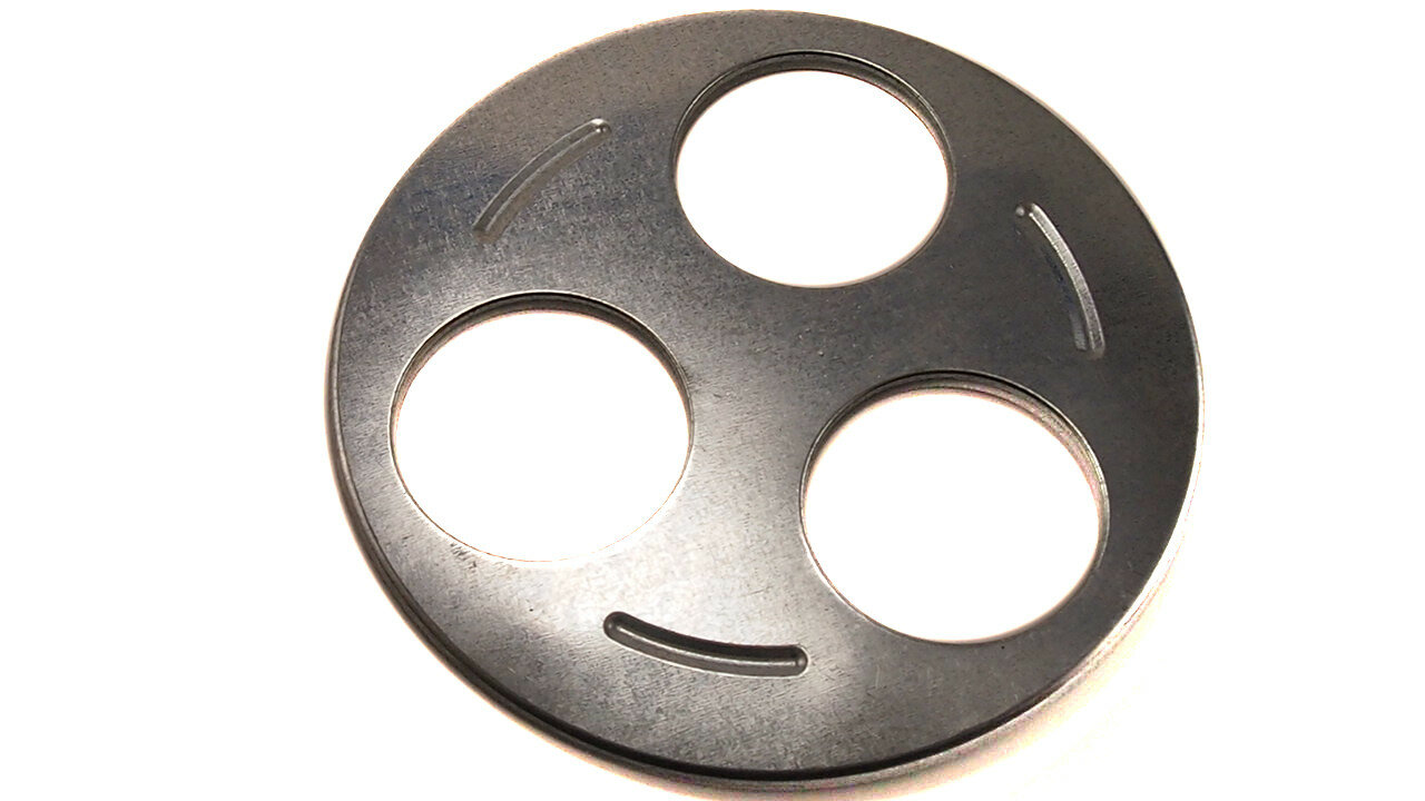 | Дополнительная информация | Стерилизовать большое количество банок перед консервированием поможет специальный диск, который удобно и надежно фиксируется на кастрюле. Диск для стерилизации имеет три отверстия и предназначен для стерилизации трёх банок одновременно. Его ставят на кастрюлю с кипящей водой. Отверстия служат для пропускания пара из кастрюли в банку, которая находится на подставке горловиной вниз. |