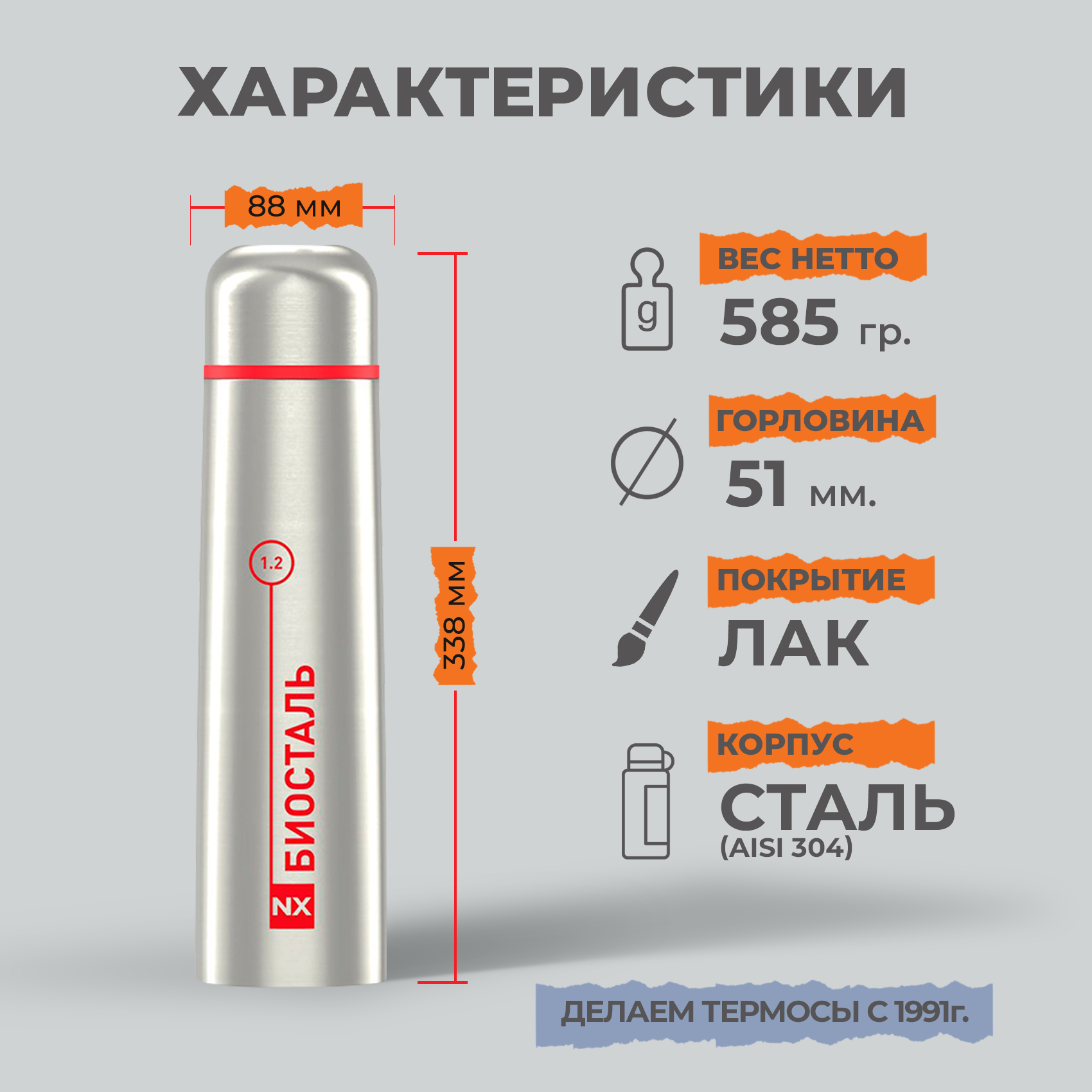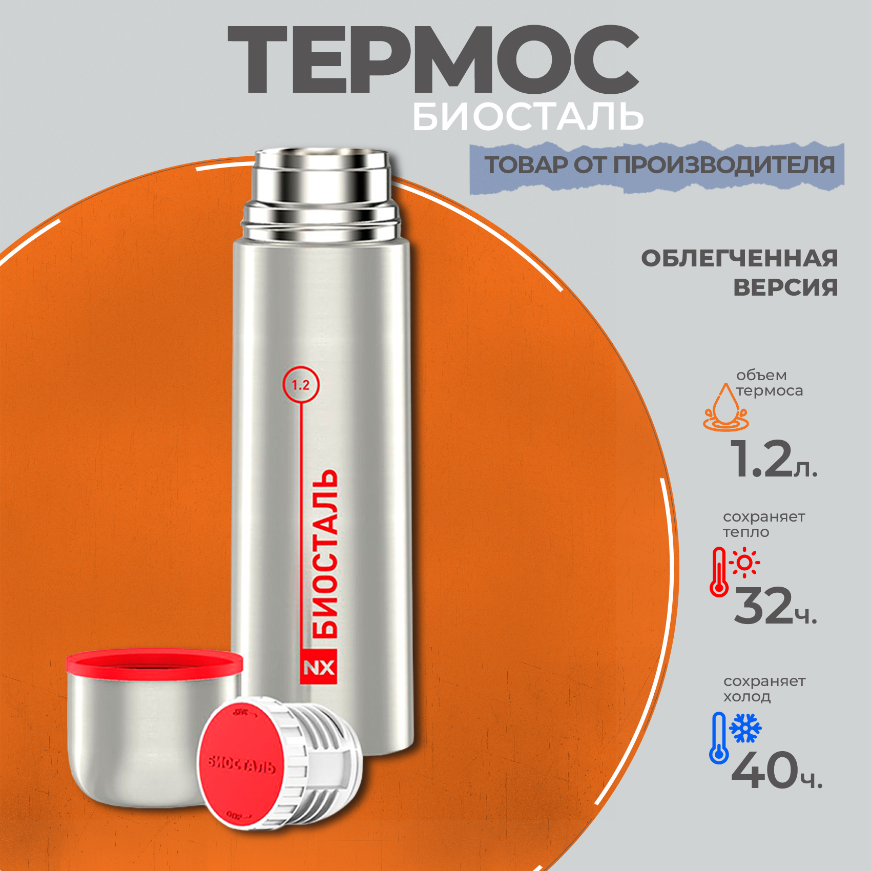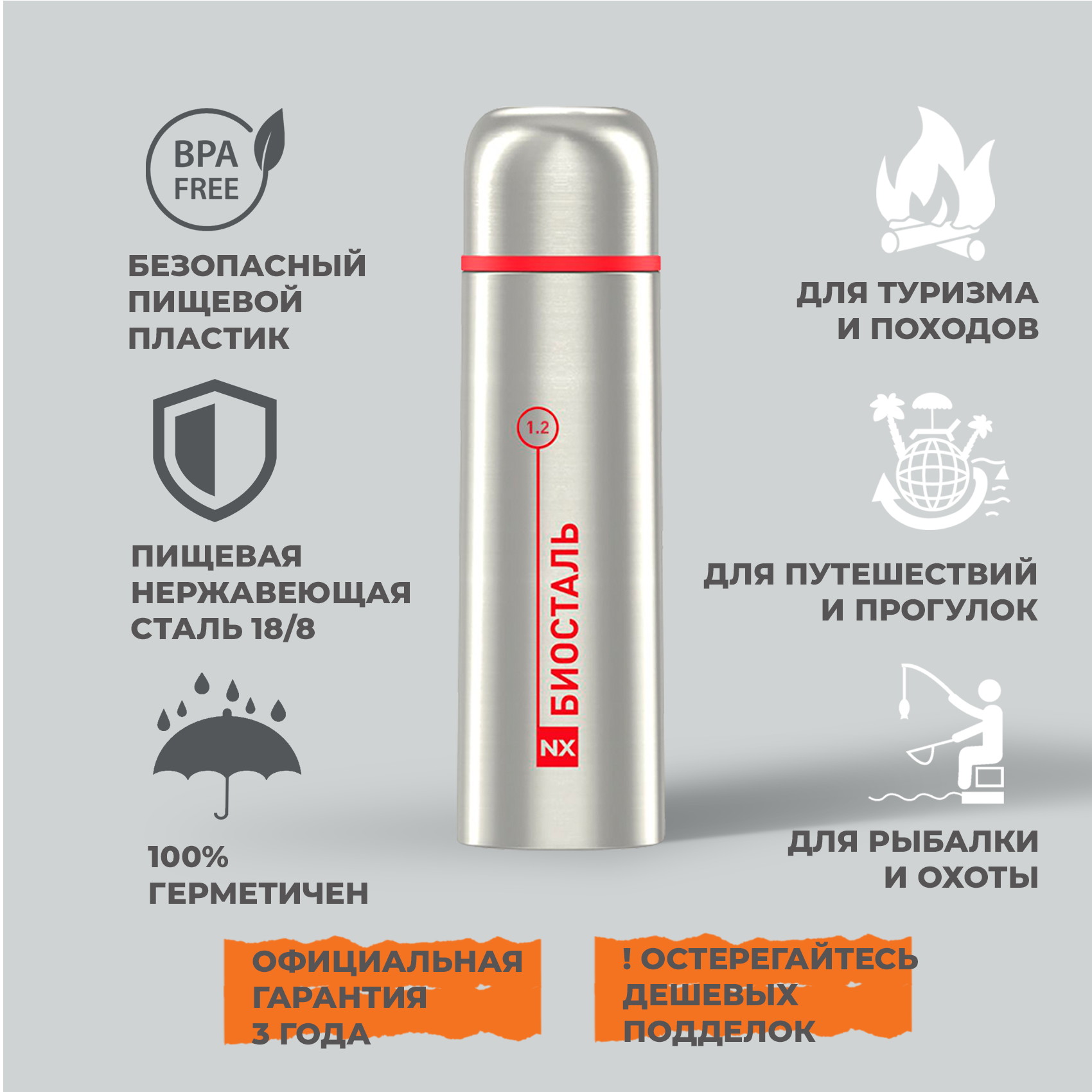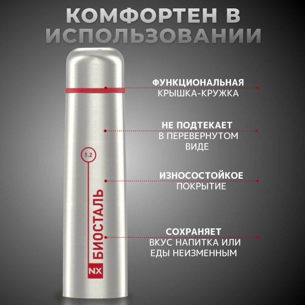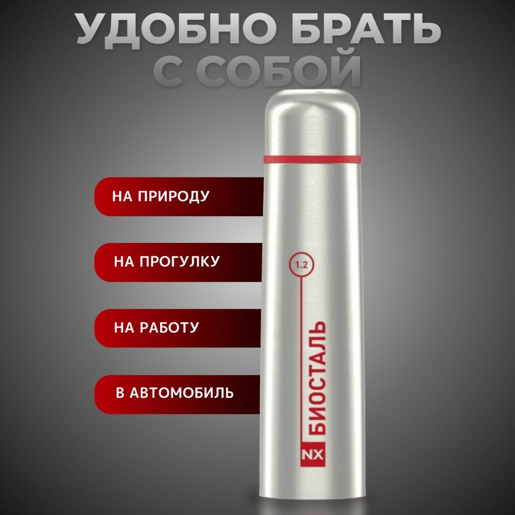 Термос биосталь NX-1200 1,2л, серебристый/красный интересное: