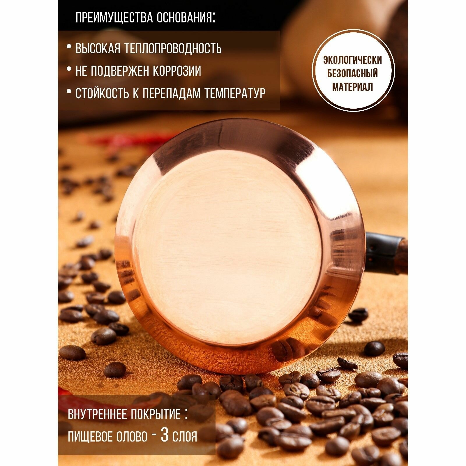 Турка (Джезва) для кофе JEZVA COFFEE "Винтаж" медная, ручной работы, объем 270 мл