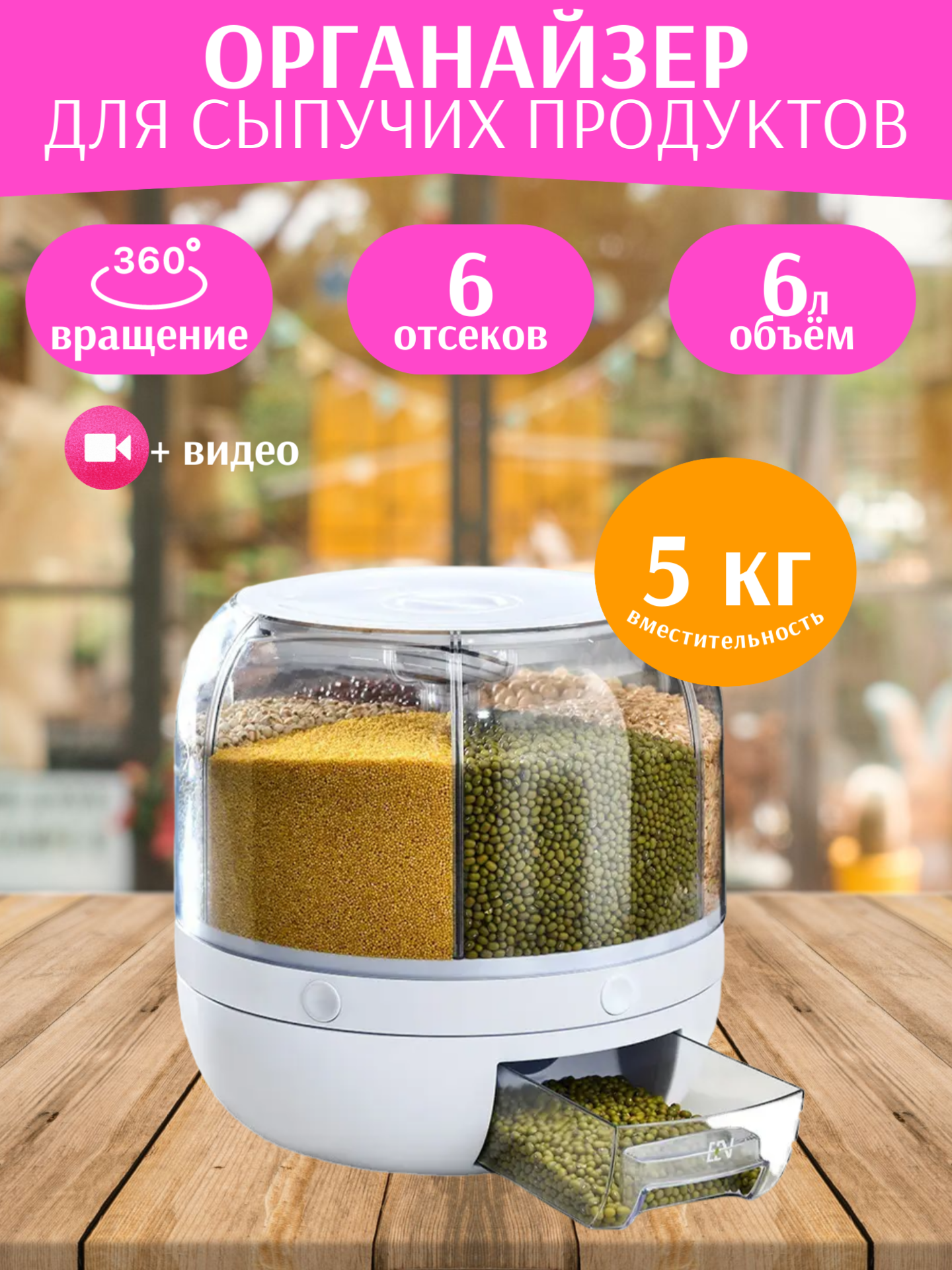СохранитьДиспенсер для круп и сыпучих продуктов, вращающийся, с дозатором 4литров интересное: