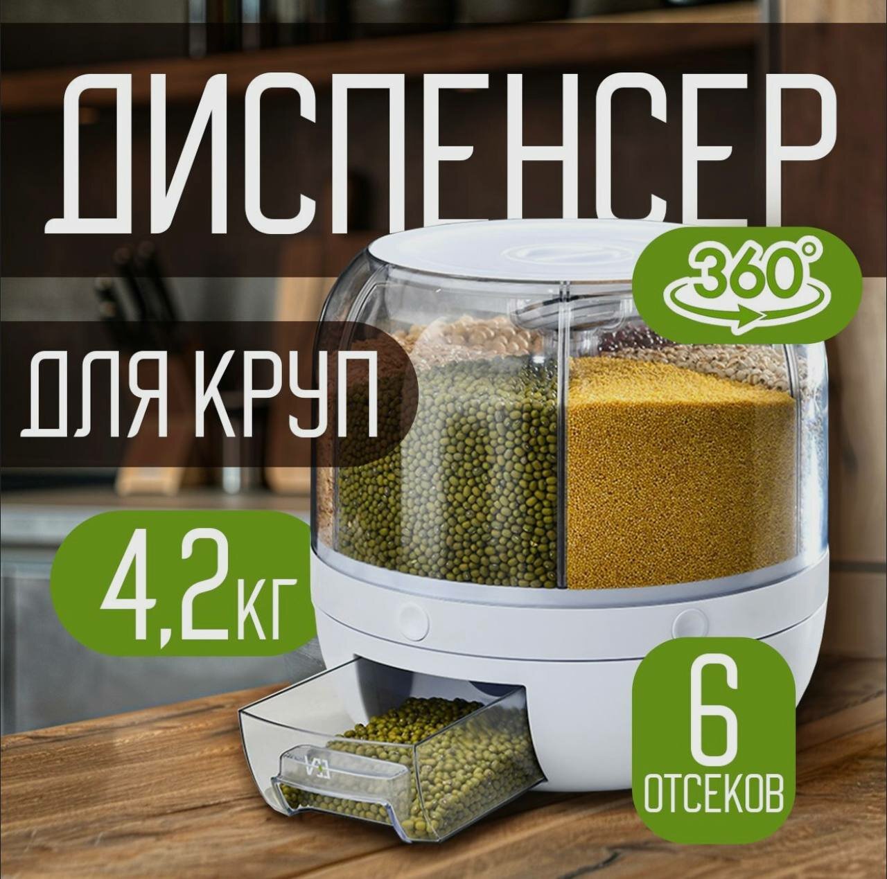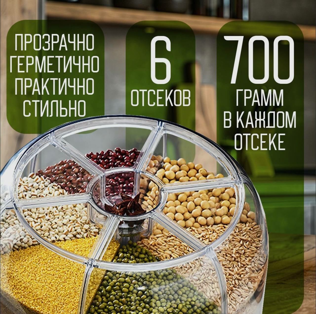 Дозатор диспенсер для сыпучих продуктов, 6 секций, 9000 мл