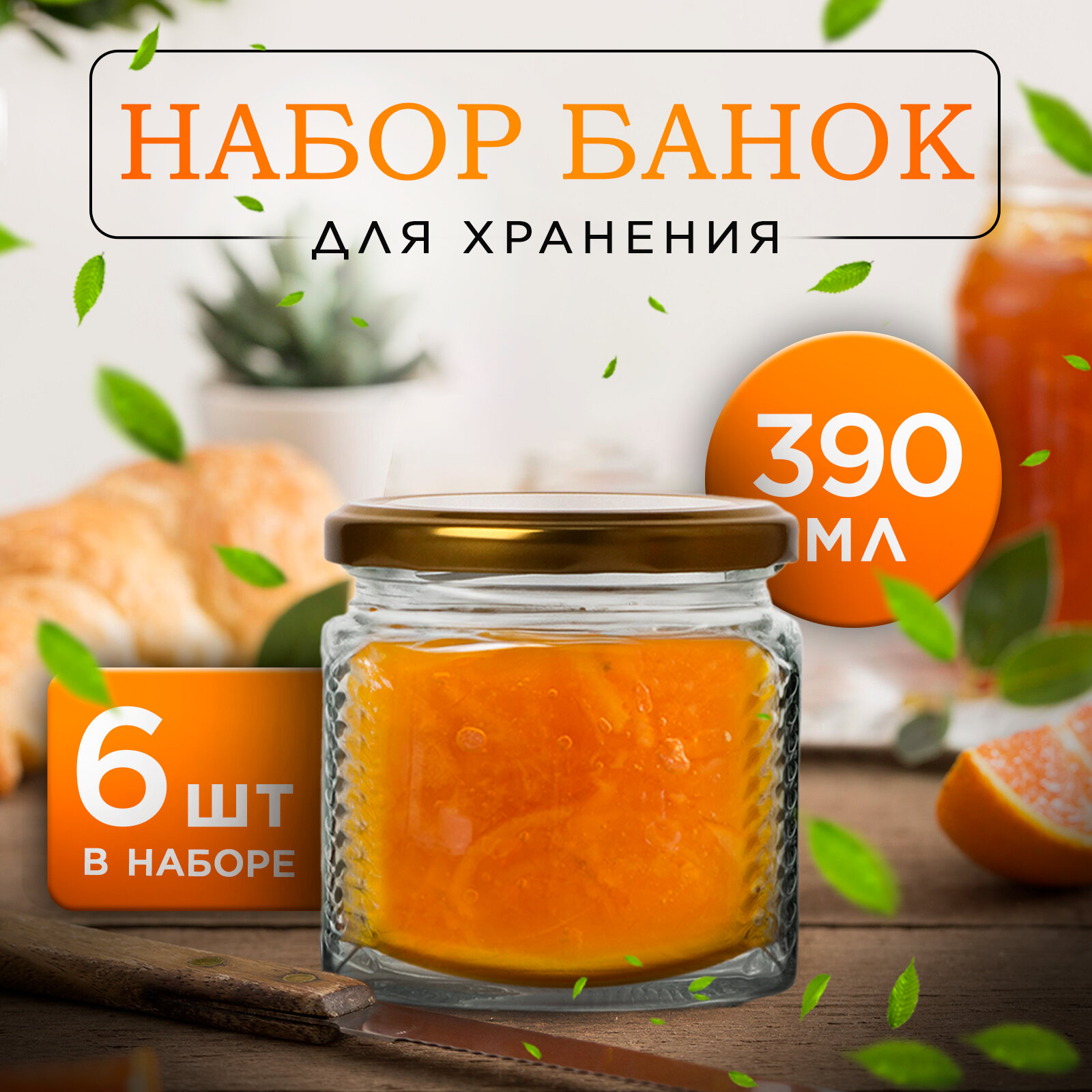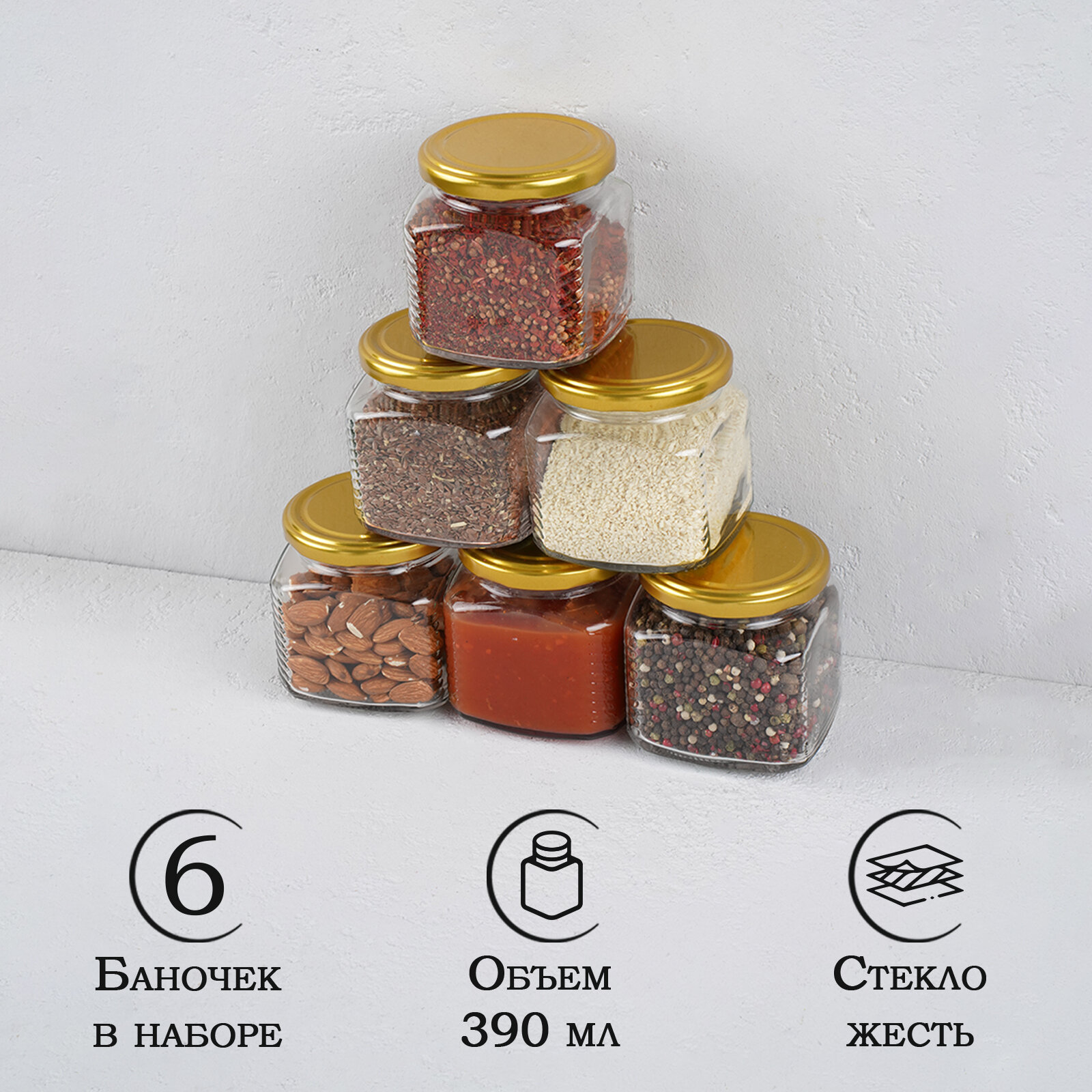 Набор банок с крышкой, ТО-82 мм, стекло, 390 мл, 6 шт.